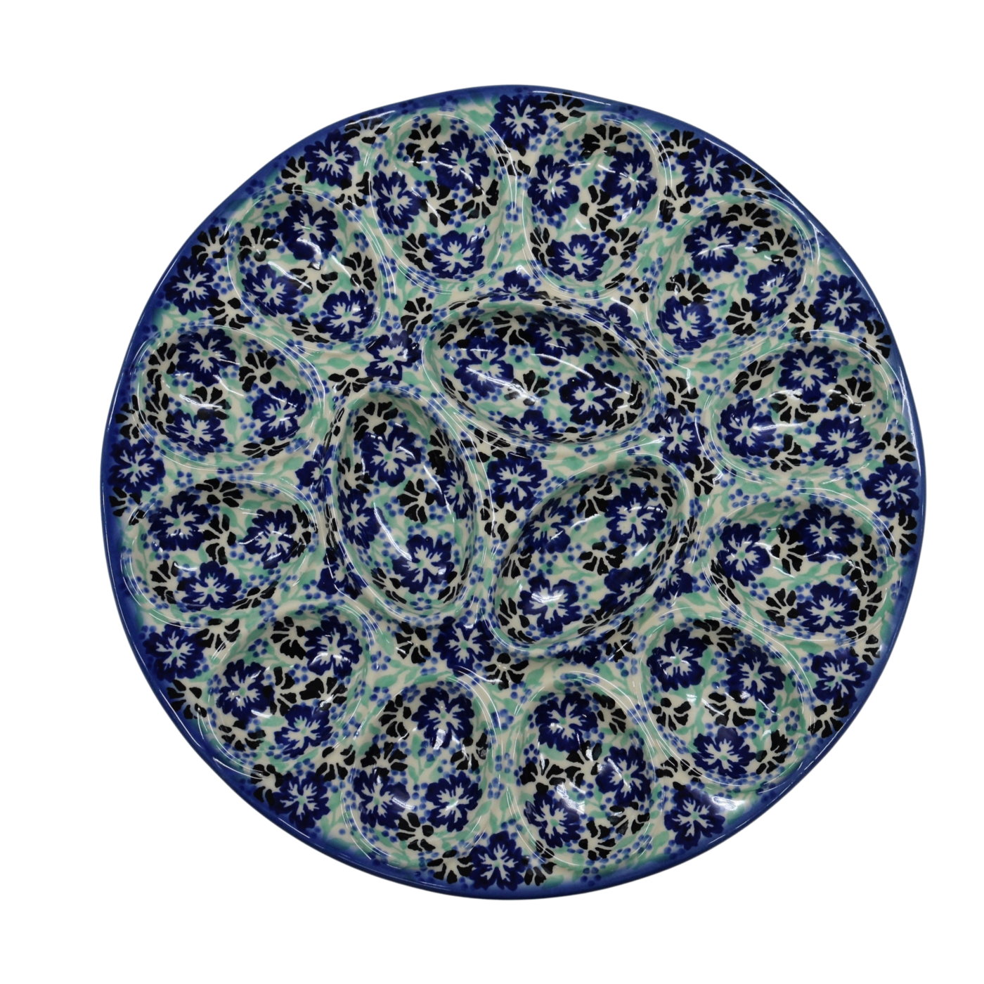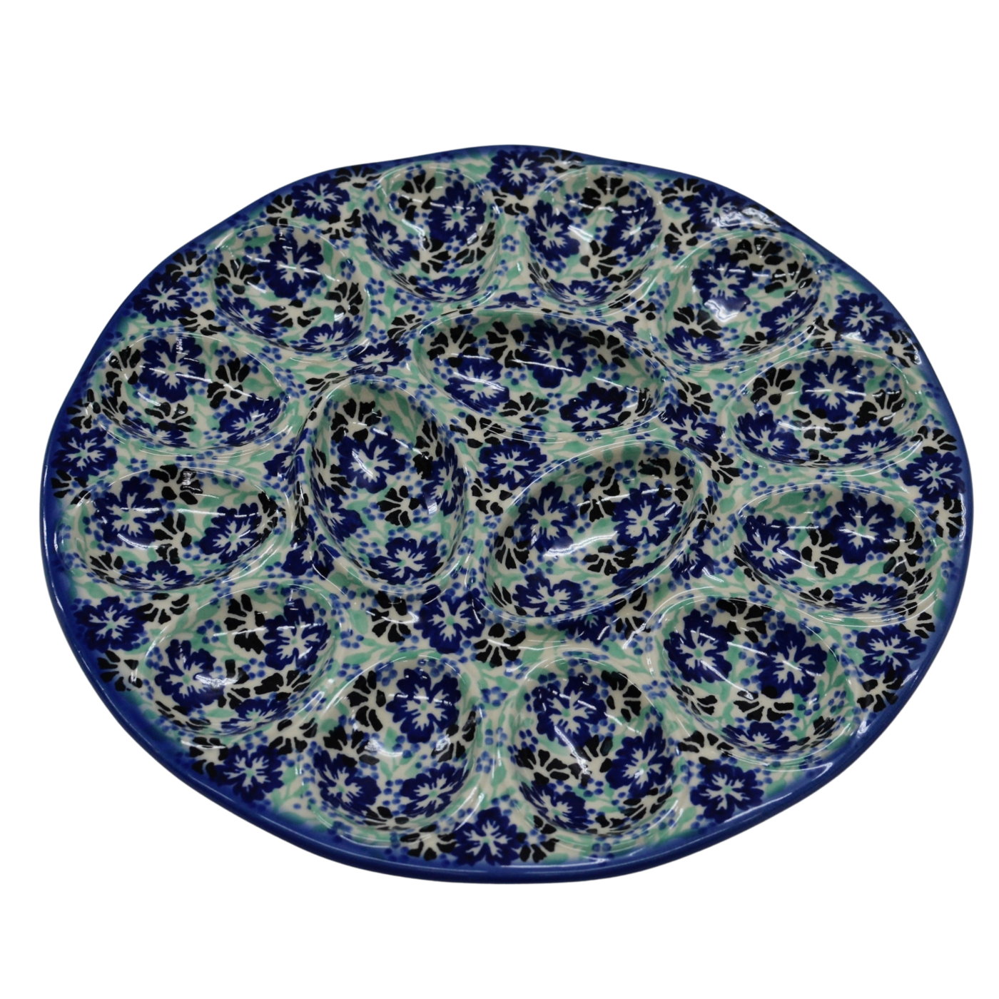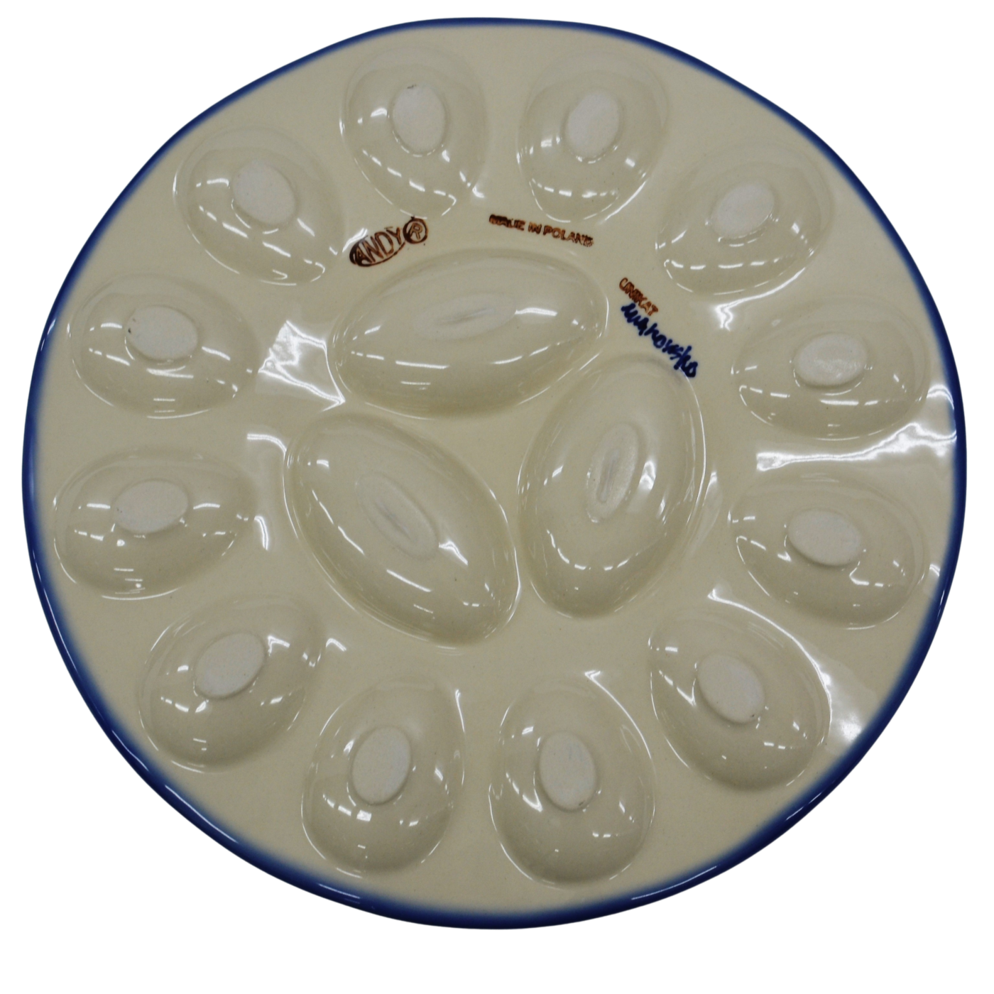 Kolekcja użytkowych talerzy do jaj, oryginalnej ceramiki bolesławieckiej, urzeka kształtami i pięknymi zdobieniami. Ta tacka na jaja jest idealna do serwowania potraw podczas przyjęć świątecznych i nie tylko. Gładka powierzchnia z wytrzymałą powłoką szkliwa, odporna na zmywanie w zmywarkach czy częste użytkowanie. Ceramika bolesławiecka to naczynia codziennego użytku.