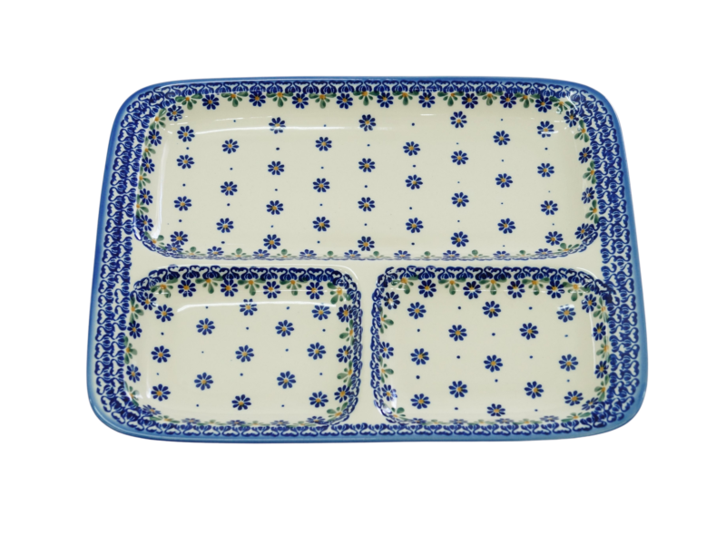 Talerze dzielony obiadowy to wspaniały pomysł na podanie na stół pięknie ułożonych i udekorowanych sałatek, surówek, mięs, ziemniaków, frytek, batatów. Potrawy umieszczone na talerzu mogą zostać ułożone w oryginalny sposób, oddzielone od siebie. Na talerzu można poukładać kolorowe sałatki, mięsa, warzywa. Wyjątkowy stół, oryginalnie podane potrawy, podczas Twojego przyjęcia, dzięki ręcznie wykonanym ceramicznym naczyniom ze zdobieniom podszkliwnym. Piękne, ręcznie dekorowane i glazurowane, talerze ceramiczne zdobione są różnokolorowymi wzorami, zieleń, czerwień, brąz, bolesławiecki kobalt, to to co dodaje wyjątkowej unikatowości i dyskretnej elegancji naczyń ceramicznych. Oryginalny talerz z Bolesławca, miasta ceramiki, niesamowicie wyróżni na stole tradycyjne polskie potrawy i te powstałe na wzór potraw kuchni całego świata.