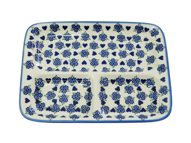 Talerze dzielony obiadowy to wspaniały pomysł na podanie na stół pięknie ułożonych i udekorowanych sałatek, surówek, mięs, ziemniaków, frytek, batatów. Potrawy umieszczone na talerzu mogą zostać ułożone w oryginalny sposób, oddzielone od siebie. Na talerzu można poukładać kolorowe sałatki, mięsa, warzywa. Wyjątkowy stół, oryginalnie podane potrawy, podczas Twojego przyjęcia, dzięki ręcznie wykonanym ceramicznym naczyniom ze zdobieniom podszkliwnym. Piękne, ręcznie dekorowane i glazurowane, talerze ceramiczne zdobione są różnokolorowymi wzorami, zieleń, czerwień, brąz, bolesławiecki kobalt, to to co dodaje wyjątkowej unikatowości i dyskretnej elegancji naczyń ceramicznych. Oryginalny talerz z Bolesławca, miasta ceramiki, niesamowicie wyróżni na stole tradycyjne polskie potrawy i te powstałe na wzór potraw kuchni całego świata.