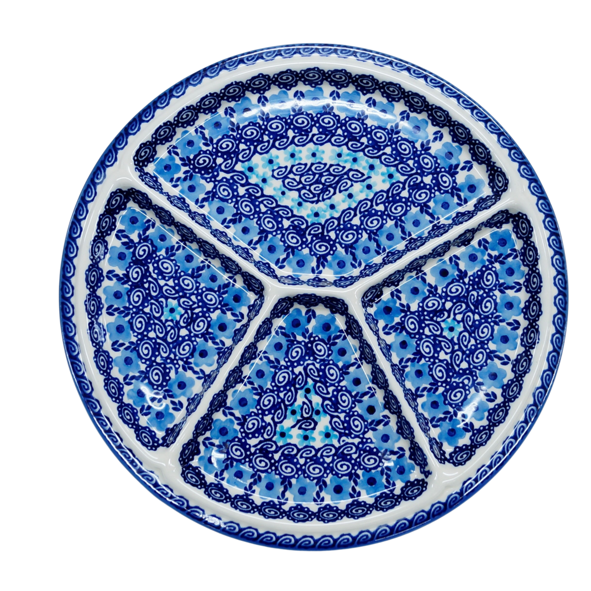 Talerze dzielony obiadowy to wspaniały pomysł na podanie na stół pięknie ułożonych i udekorowanych sałatek, surówek, mięs, ziemniaków, frytek, batatów. Potrawy umieszczone na talerzu mogą zostać ułożone w oryginalny sposób, oddzielone od siebie. Na talerzu można poukładać kolorowe sałatki, mięsa, warzywa. Wyjątkowy stół, oryginalnie podane potrawy, podczas Twojego przyjęcia, dzięki ręcznie wykonanym ceramicznym naczyniom ze zdobieniom podszkliwnym. Piękne, ręcznie dekorowane i glazurowane, talerze ceramiczne zdobione są różnokolorowymi wzorami, zieleń, czerwień, brąz, bolesławiecki kobalt, to to co dodaje wyjątkowej unikatowości i dyskretnej elegancji naczyń ceramicznych. Oryginalny talerz z Bolesławca, miasta ceramiki, niesamowicie wyróżni na stole tradycyjne polskie potrawy i te powstałe na wzór potraw kuchni całego świata.