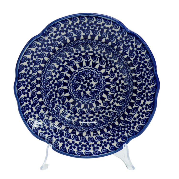Kolekcja użytkowych talerzy oryginalnej ceramiki bolesławieckiej, urzeka symetrycznymi kształtami i piękną linia brzegową, dekorowane z pasją i zaangażowanie. Gładka powierzchnia z wytrzymałą powłoką szkliwa i wzmocnionymi krawędziami, odporna na zmywanie w zmywarkach.
