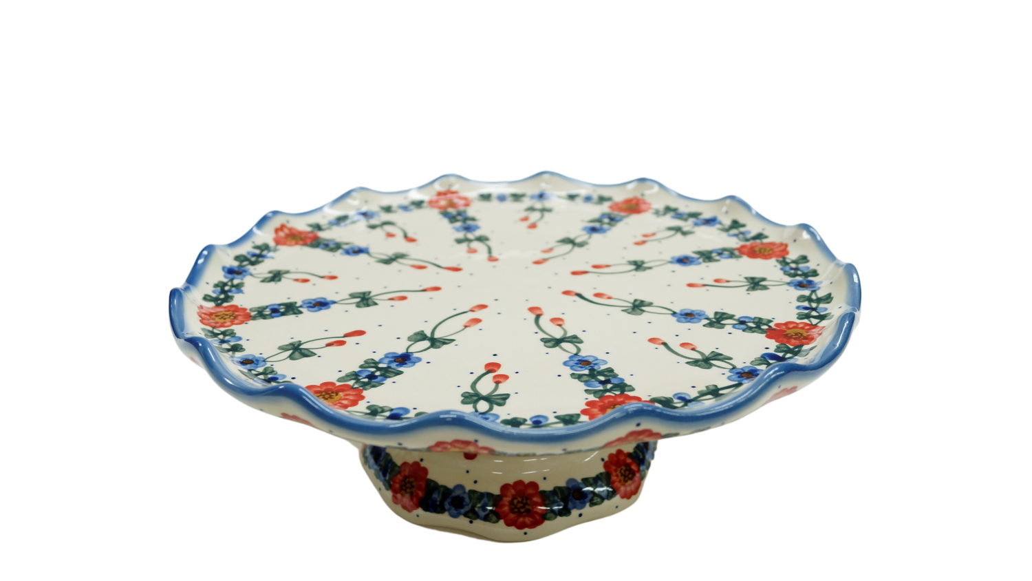 Oryginalny produkt ceramiki bolesławieckiej - talerz na ciasto - tortownica, ręcznie malowany w rodzinnej fabryce kamionki bolesławieckiej, ANDY CERAMIKA.
