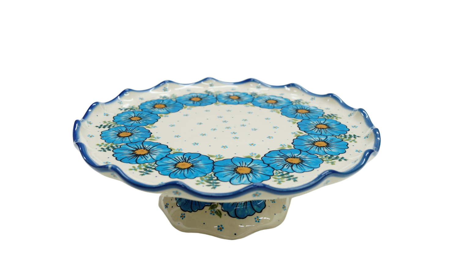 Oryginalny produkt ceramiki bolesławieckiej - talerz na ciasto - tortownica, ręcznie malowany w rodzinnej fabryce kamionki bolesławieckiej, ANDY CERAMIKA.