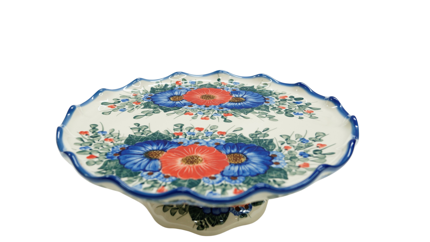 Oryginalny produkt ceramiki bolesławieckiej - talerz na ciasto - tortownica, ręcznie malowany w rodzinnej fabryce kamionki bolesławieckiej, ANDY CERAMIKA.