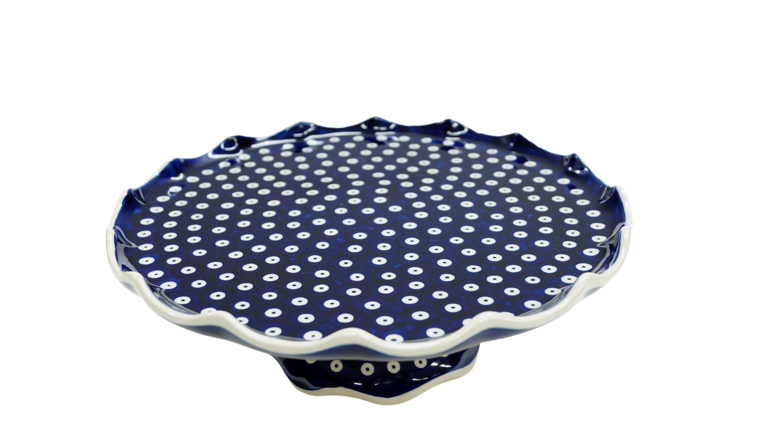 Oryginalny produkt ceramiki bolesławieckiej - talerz na ciasto - tortownica, ręcznie malowany w rodzinnej fabryce kamionki bolesławieckiej, ANDY CERAMIKA.