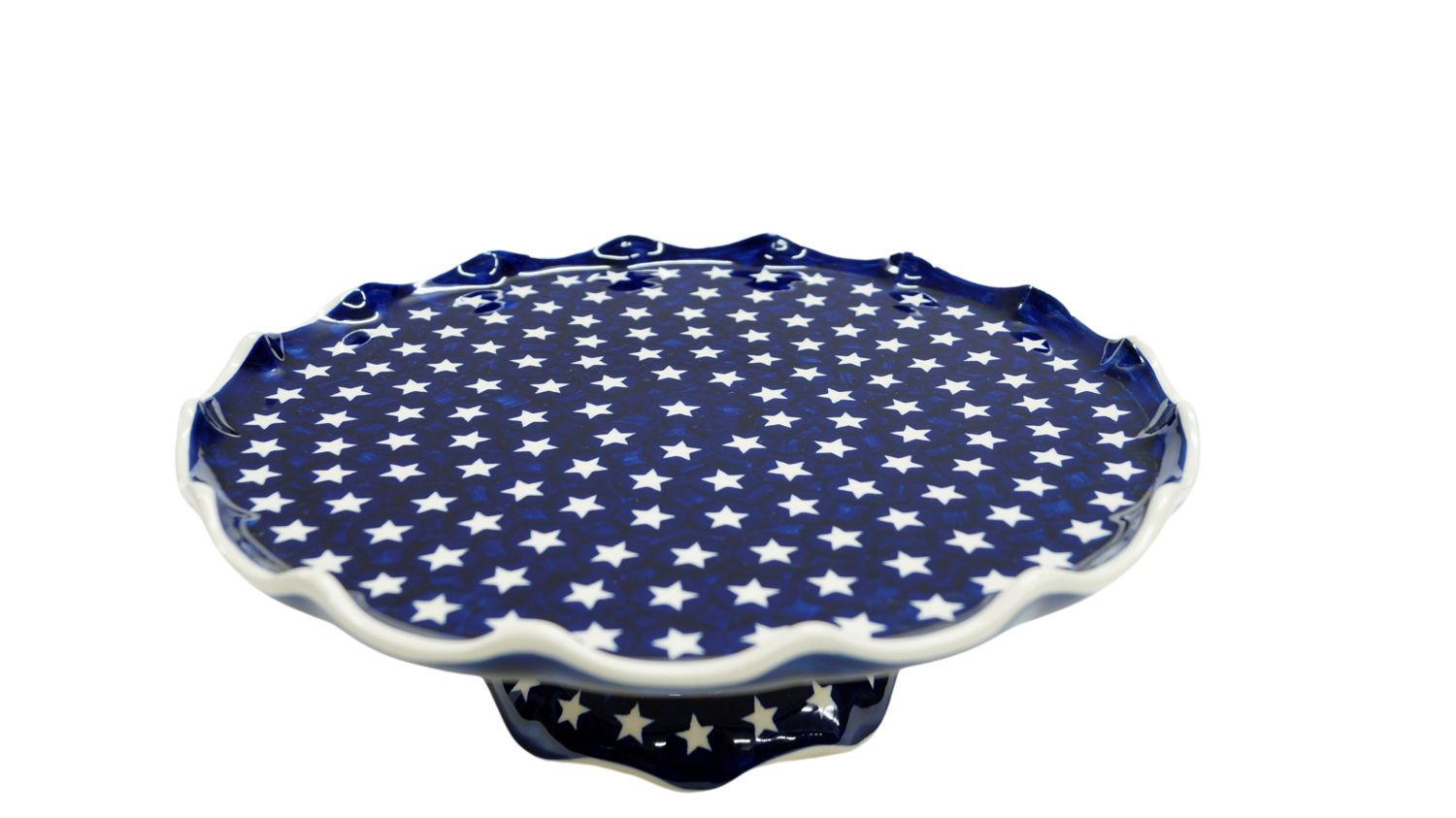 Oryginalny produkt ceramiki bolesławieckiej - talerz na ciasto - tortownica, ręcznie malowany w rodzinnej fabryce kamionki bolesławieckiej, ANDY CERAMIKA.