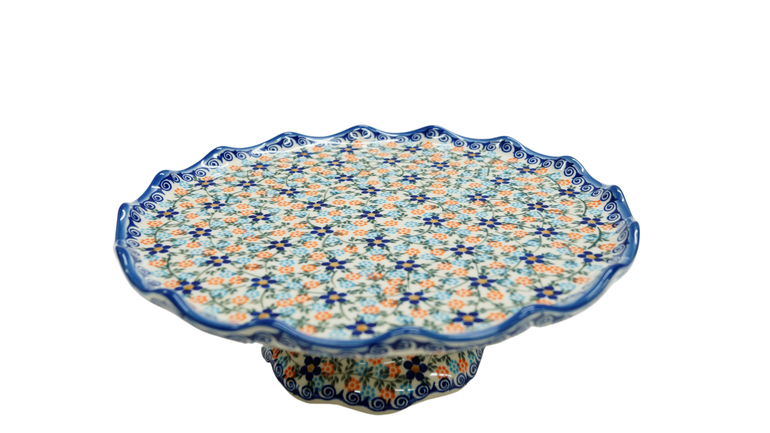 Oryginalny produkt ceramiki bolesławieckiej - talerz na ciasto - tortownica, ręcznie malowany w rodzinnej fabryce kamionki bolesławieckiej, ANDY CERAMIKA.