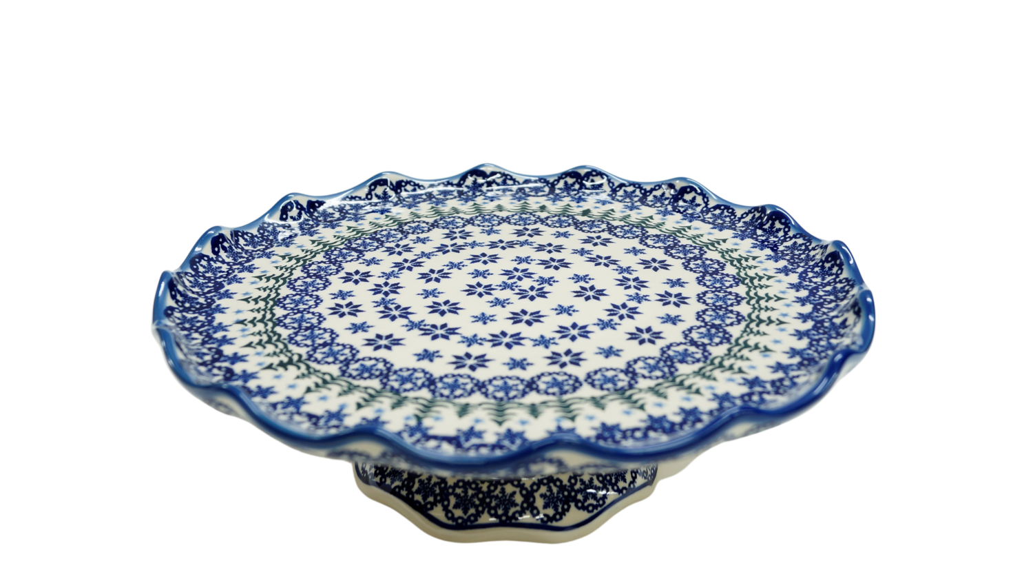 Oryginalny produkt ceramiki bolesławieckiej - talerz na ciasto - tortownica, ręcznie malowany w rodzinnej fabryce kamionki bolesławieckiej, ANDY CERAMIKA.