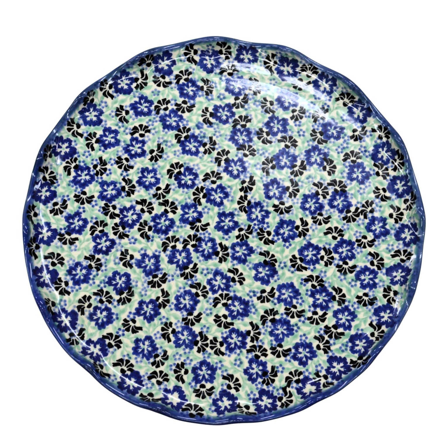 Oryginalny produkt ceramiki bolesławieckiej - talerz na ciasto - tortownica, ręcznie malowany w rodzinnej fabryce kamionki bolesławieckiej, ANDY CERAMIKA.