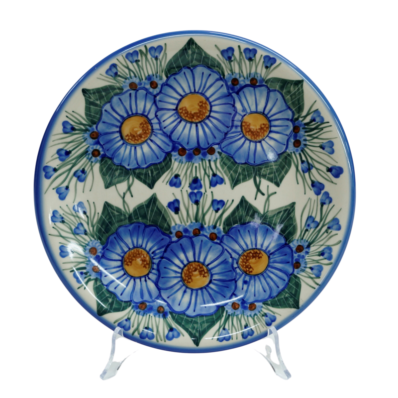 Talerz ten to oryginalna kamionka bolesławiecka, jest ręcznie malowana i wyprodukowana w Bolesławcu. Każda dekoracja ceramiki artystycznej z naszej rodzinnej manufaktury powstała z najwyższą dbałością o detale (ręcznie nakładane stempelki i z pasją malowane dekoracje kwiatowe).