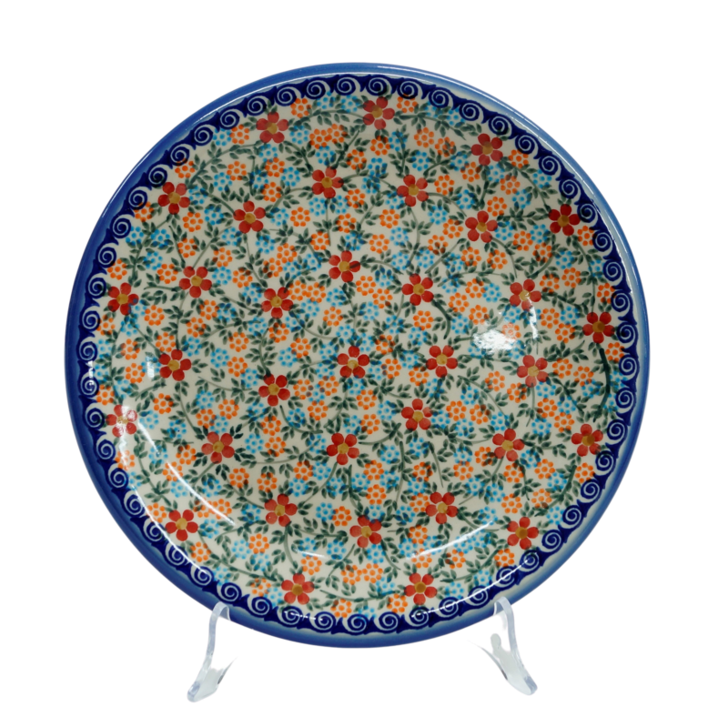 Talerz ten to oryginalna kamionka bolesławiecka, jest ręcznie malowana i wyprodukowana w Bolesławcu. Każda dekoracja ceramiki artystycznej z naszej rodzinnej manufaktury powstała z najwyższą dbałością o detale (ręcznie nakładane stempelki i z pasją malowane dekoracje kwiatowe).