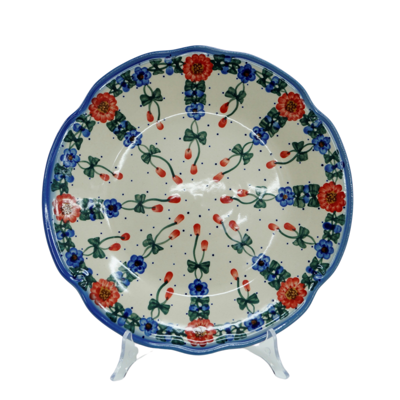 Kolekcja użytkowych talerzy oryginalnej ceramiki bolesławieckiej urzeka symetrycznymi kształtami i piękną linia brzegową, dekorowane z pasją i zaangażowanie. Gładka powierzchnia z wytrzymałą powłoką szkliwa i wzmocnionymi krawędziami, odporna na zmywanie w zmywarkach.