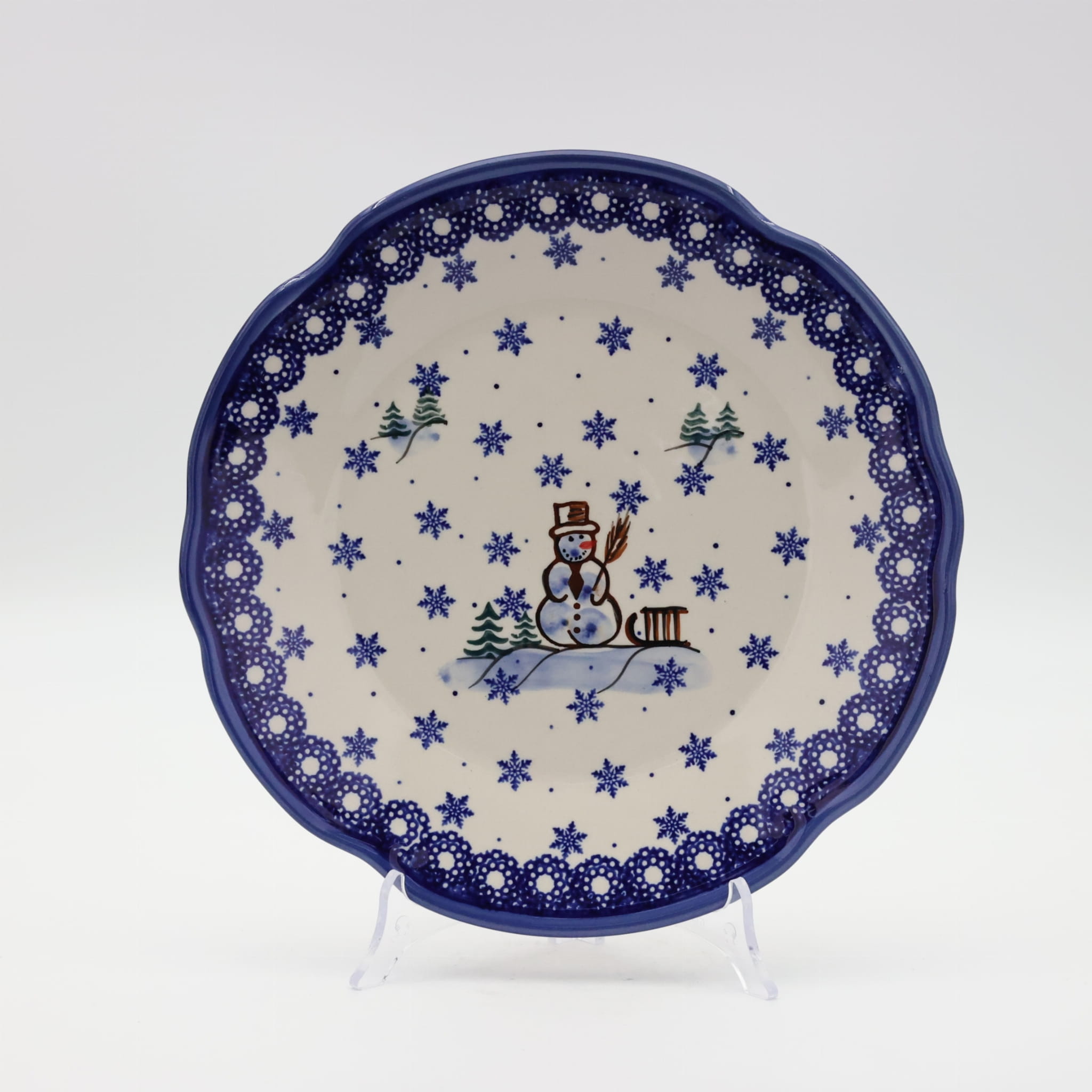 Kolekcja użytkowych talerzy oryginalnej ceramiki bolesławieckiej urzeka symetrycznymi kształtami i piękną linia brzegową, dekorowane z pasją i zaangażowanie. Gładka powierzchnia z wytrzymałą powłoką szkliwa i wzmocnionymi krawędziami, odporna na zmywanie w zmywarkach.