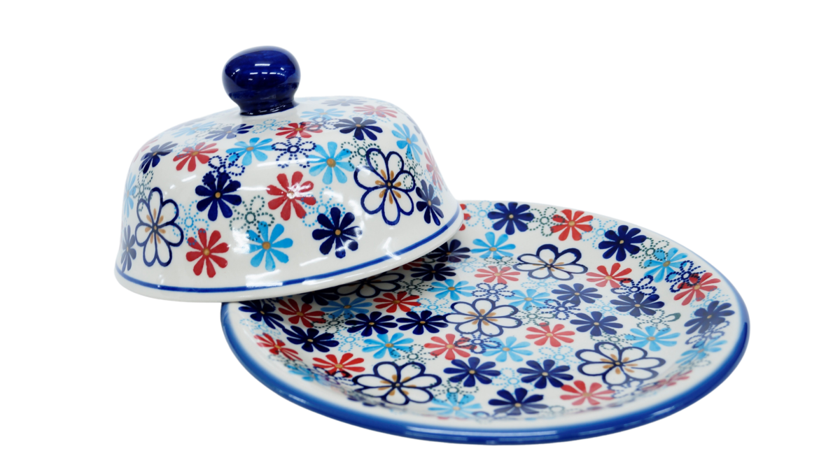 Talerz ceramiczny z pokrywą to idealny wyrób rękodzieła bolesławieckiego jako naczynie do serwowania potraw, przekąsek i różnych dodatków - oliwek, nadziewanych papryczek, kawałków sera, warzyw, orzeszków, cukierków, ciastek. Posłuży jako naczynie do podawania gorących mięs, warzyw czy sałatek. Skutecznie zatrzymuje temperaturę gorących potraw bądź trzyma chłód potraw chłodzonych.