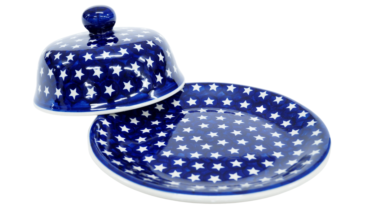 Talerz ceramiczny z pokrywą to idealny wyrób rękodzieła bolesławieckiego jako naczynie do serwowania potraw, przekąsek i różnych dodatków - oliwek, nadziewanych papryczek, kawałków sera, warzyw, orzeszków, cukierków, ciastek. Posłuży jako naczynie do podawania gorących mięs, warzyw czy sałatek. Skutecznie zatrzymuje temperaturę gorących potraw bądź trzyma chłód potraw chłodzonych.