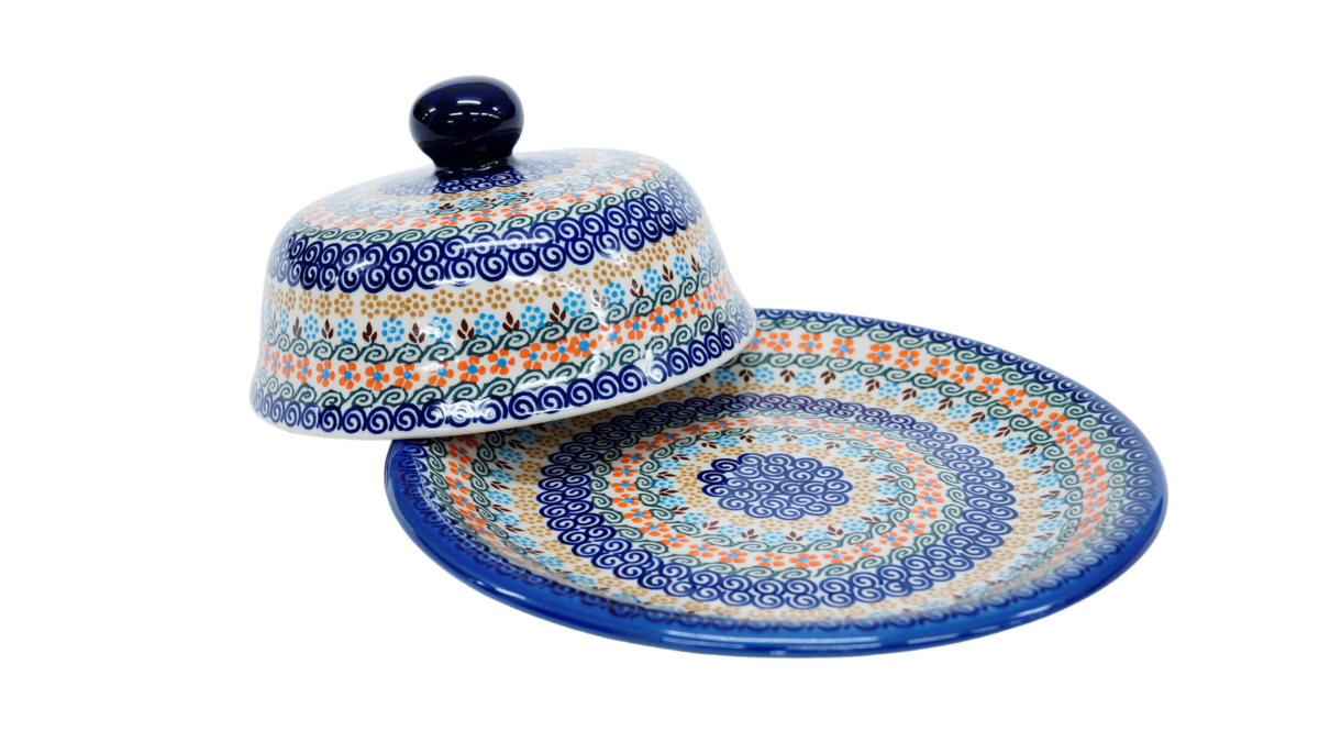Talerz ceramiczny z pokrywą to idealny wyrób rękodzieła bolesławieckiego jako naczynie do serwowania potraw, przekąsek i różnych dodatków - oliwek, nadziewanych papryczek, kawałków sera, warzyw, orzeszków, cukierków, ciastek. Posłuży jako naczynie do podawania gorących mięs, warzyw czy sałatek. Skutecznie zatrzymuje temperaturę gorących potraw bądź trzyma chłód potraw chłodzonych.
