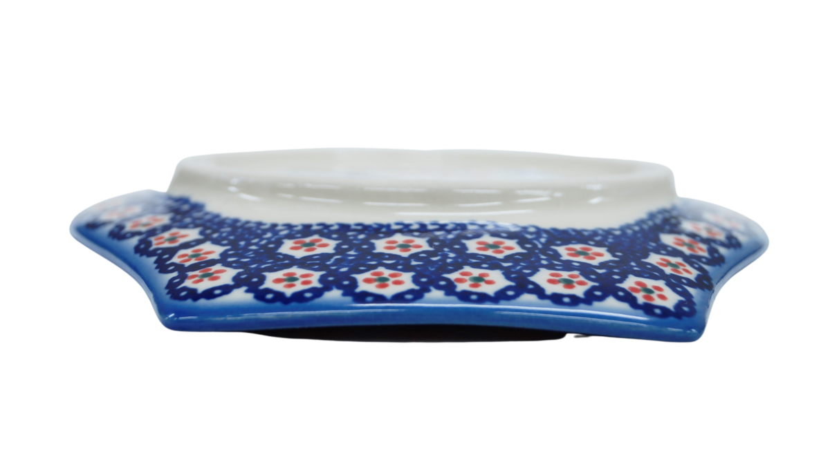 Stworzony jako tacka - talerz do podawania i podstawiania pod łyżkę czy chochelkę. Posłuży również jako talerzyk do serwowania przekąsek i różnych dodatków - oliwek, nadziewanych papryczek, kawałków sera, warzyw, orzeszków, cukierków. Niestandardowa linia ładnie wpisze się w styl nowoczesny oraz klasyczny i przyciągnie uwagę każdego gościa w Twoim domu wyposażonym w ceramikę artystyczna z Bolesławca.