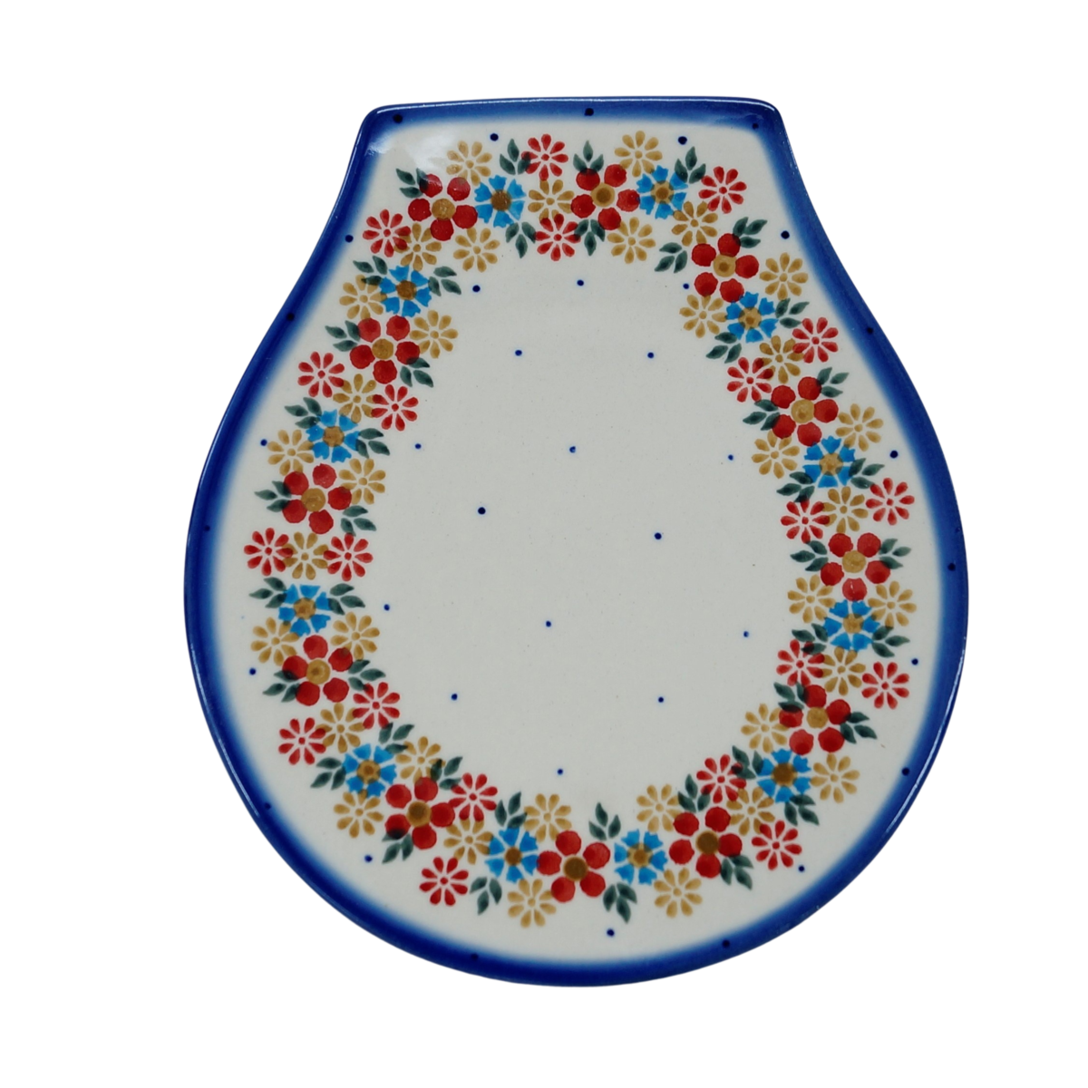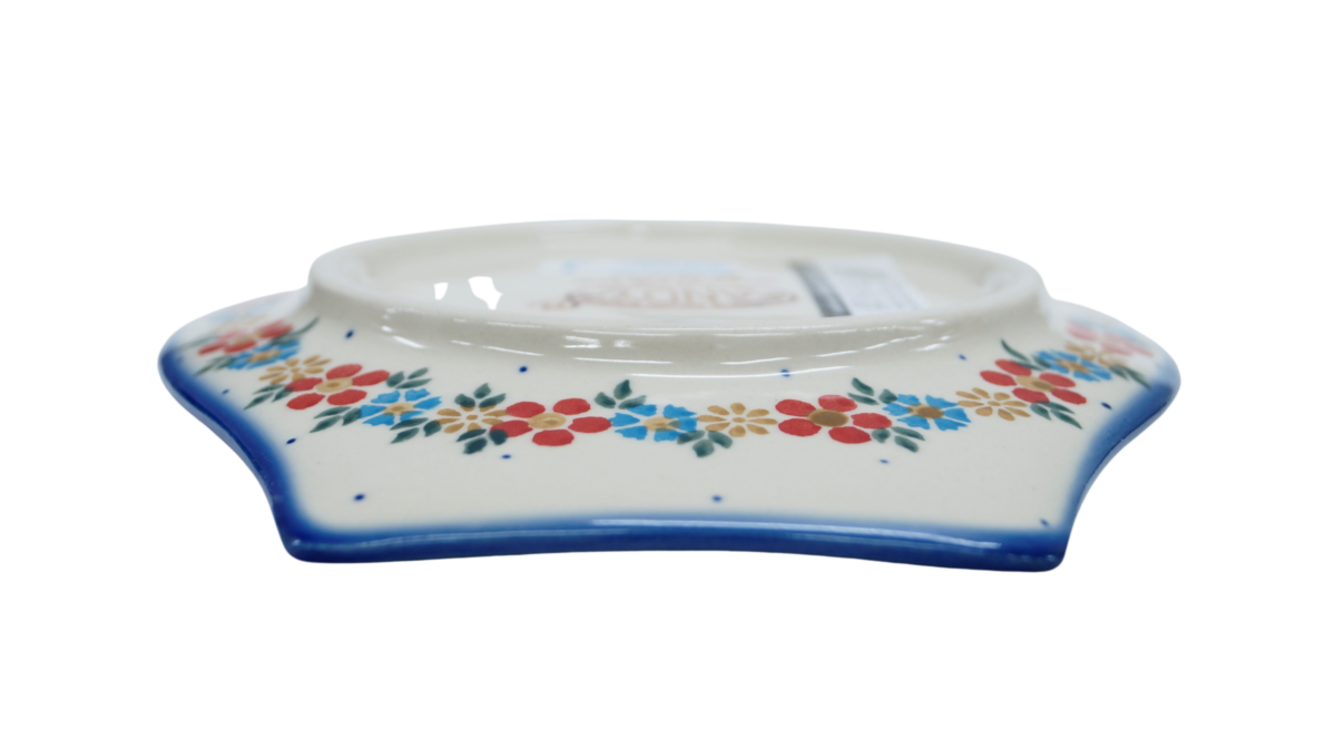 Stworzony jako tacka - talerz do podawania i podstawiania pod łyżkę czy chochelkę. Posłuży również jako talerzyk do serwowania przekąsek i różnych dodatków - oliwek, nadziewanych papryczek, kawałków sera, warzyw, orzeszków, cukierków. Niestandardowa linia ładnie wpisze się w styl nowoczesny oraz klasyczny i przyciągnie uwagę każdego gościa w Twoim domu wyposażonym w ceramikę artystyczna z Bolesławca.