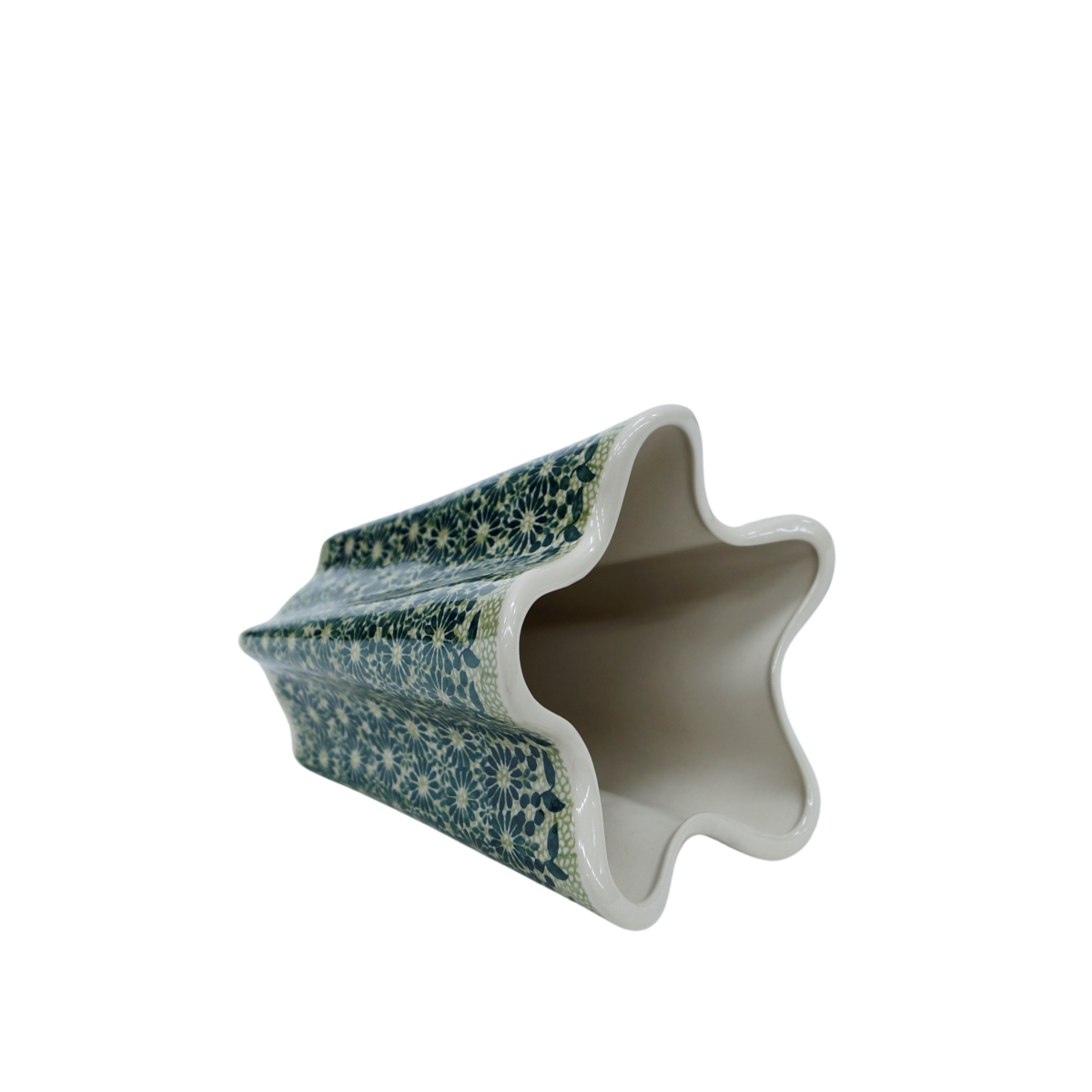 Stylowy wazon, który niesie w sobie elementy kultury i tradycji ceramiki bolesławieckiej. Idealny do eksponowania kwiatów żywych jak i równie popularnych coraz bardziej odwzorowujących prawdziwe, kwiatów sztucznych.