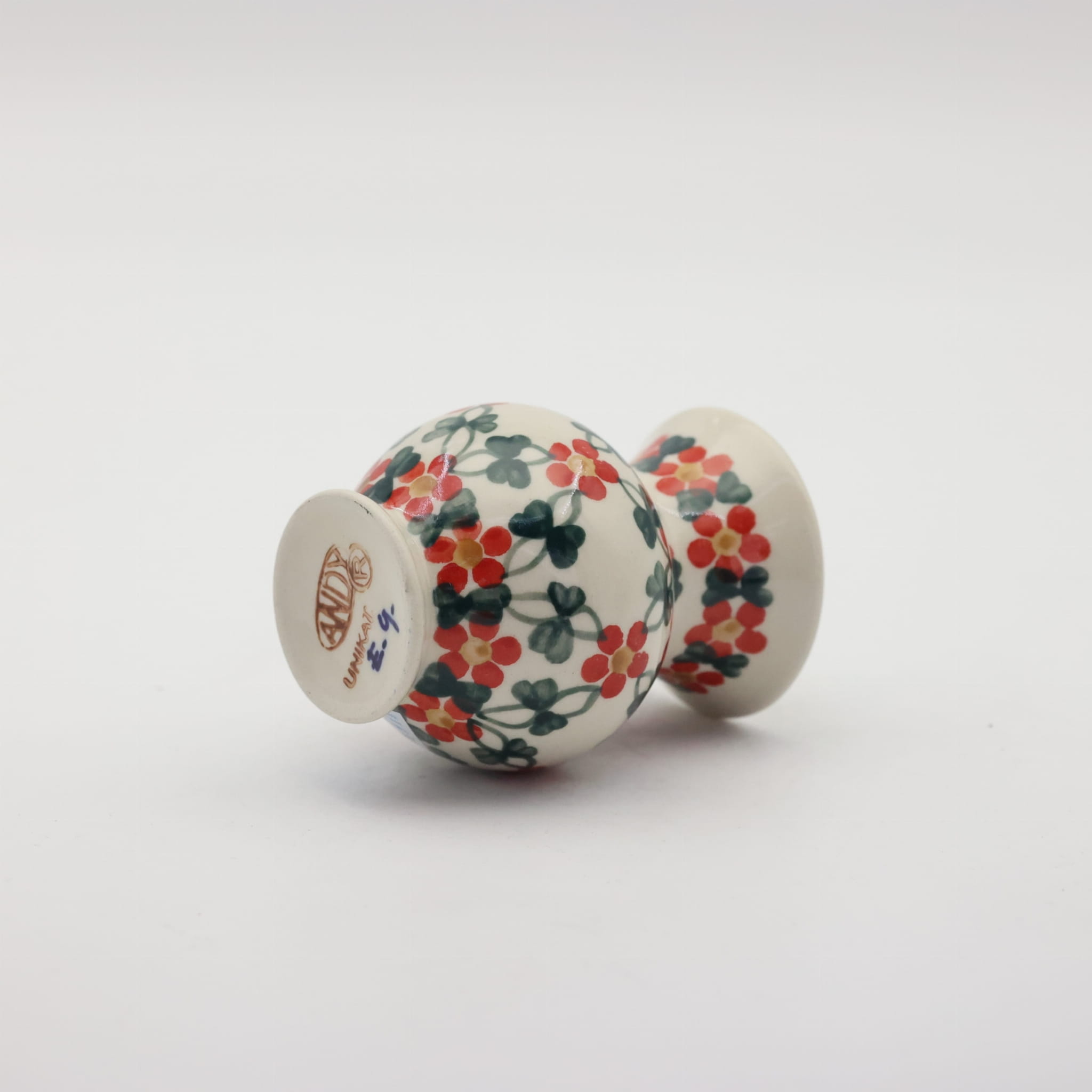 Ceramika bolesławiecka słynie z ręcznego zdobienia metodą stempelkową, a wazon „Kulka” jest doskonałym przykładem tej techniki. Każdy egzemplarz jest unikalnym dziełem sztuki, tworzonym przez doświadczonych rzemieślników, którzy z najwyższą precyzją nanoszą charakterystyczne wzory. Dominujące motywy, takie jak klasyczne kobaltowe kropki, pawie oczka, delikatne kwiaty czy geometryczne ornamenty, dodają wazonowi niepowtarzalnego charakteru i subtelnej elegancji.