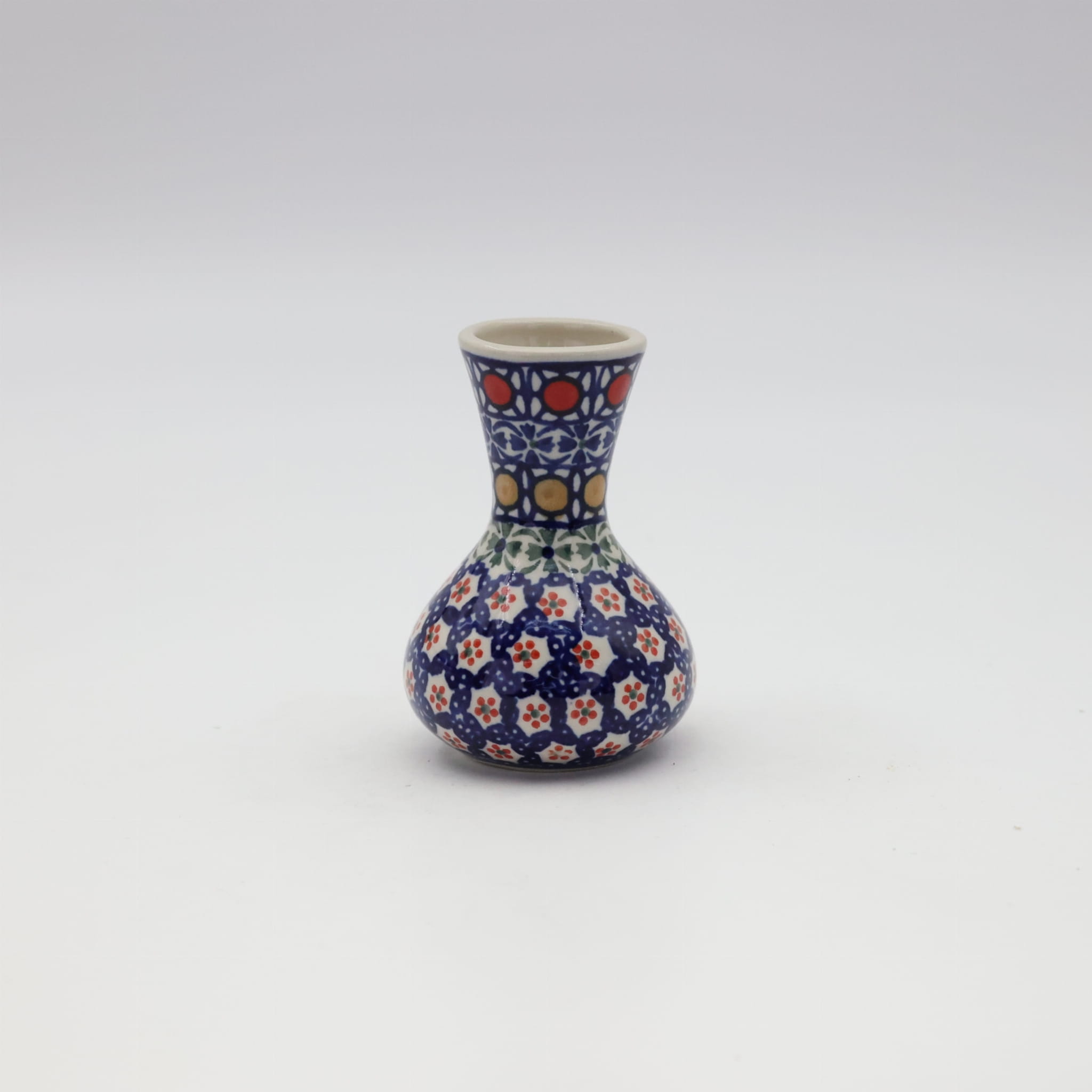 Oryginalny wazon ceramiczny z Bolesławca to wyjątkowy element dekoracyjny. Wazon mały Maja, to wyrób ceramiczny który zachwyca swoją unikalnością i tradycyjnym wzornictwem. Wykonany z najwyższej jakości ceramiki i ręcznie malowany w charakterystyczne bolesławieckie motywy, stanowi piękne połączenie rzemiosła i sztuki. Jego subtelne zdobienia i klasyczna forma sprawiają, że doskonale komponuje się z różnymi wnętrzami, dodając im elegancji i ciepła.