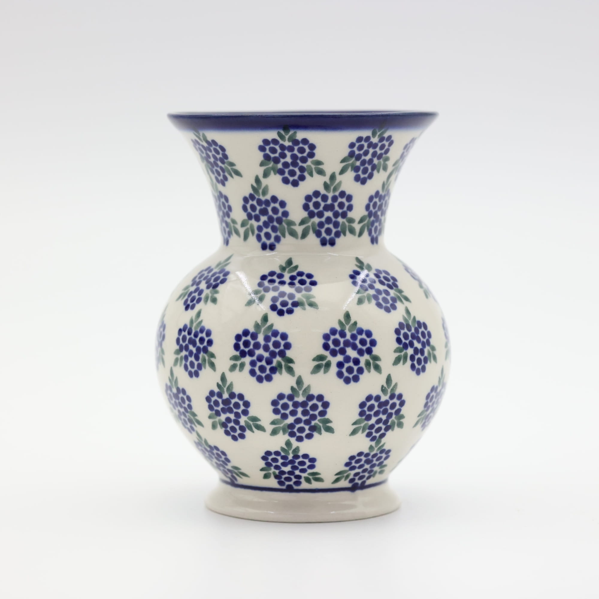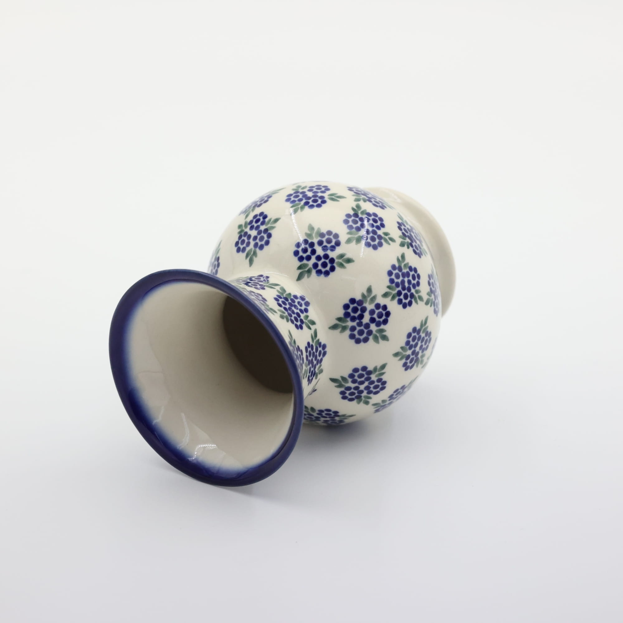 Oryginalny produkt ceramiki bolesławieckiej z zakładu ceramiki artystycznej, ANDY CERAMIKA. Ręcznie malowany ceramiczny wazon w tradycyjne dekoracje stempelkowe oraz motywy kwiatowe. Wazon ceramiczny na kwiaty. Kształt wazonu to kulka o pojemności 400 ml.