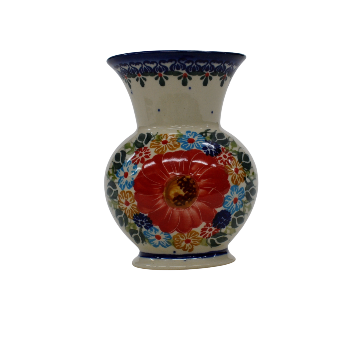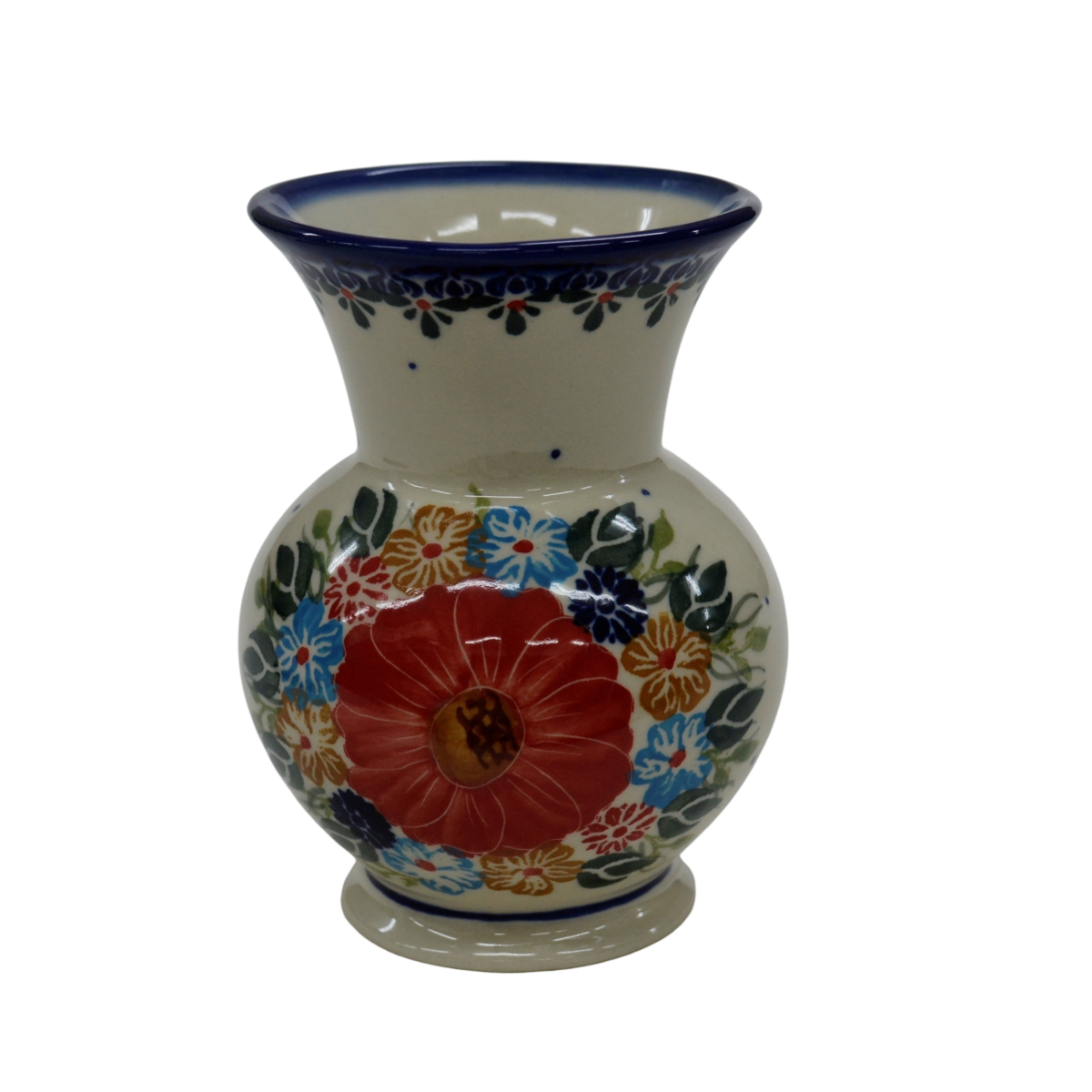 Oryginalny produkt ceramiki bolesławieckiej z zakładu ceramiki artystycznej, ANDY CERAMIKA. Ręcznie malowany ceramiczny wazon w tradycyjne dekoracje stempelkowe oraz motywy kwiatowe. Wazon ceramiczny na kwiaty. Kształt wazonu to kulka o pojemności 400 ml.