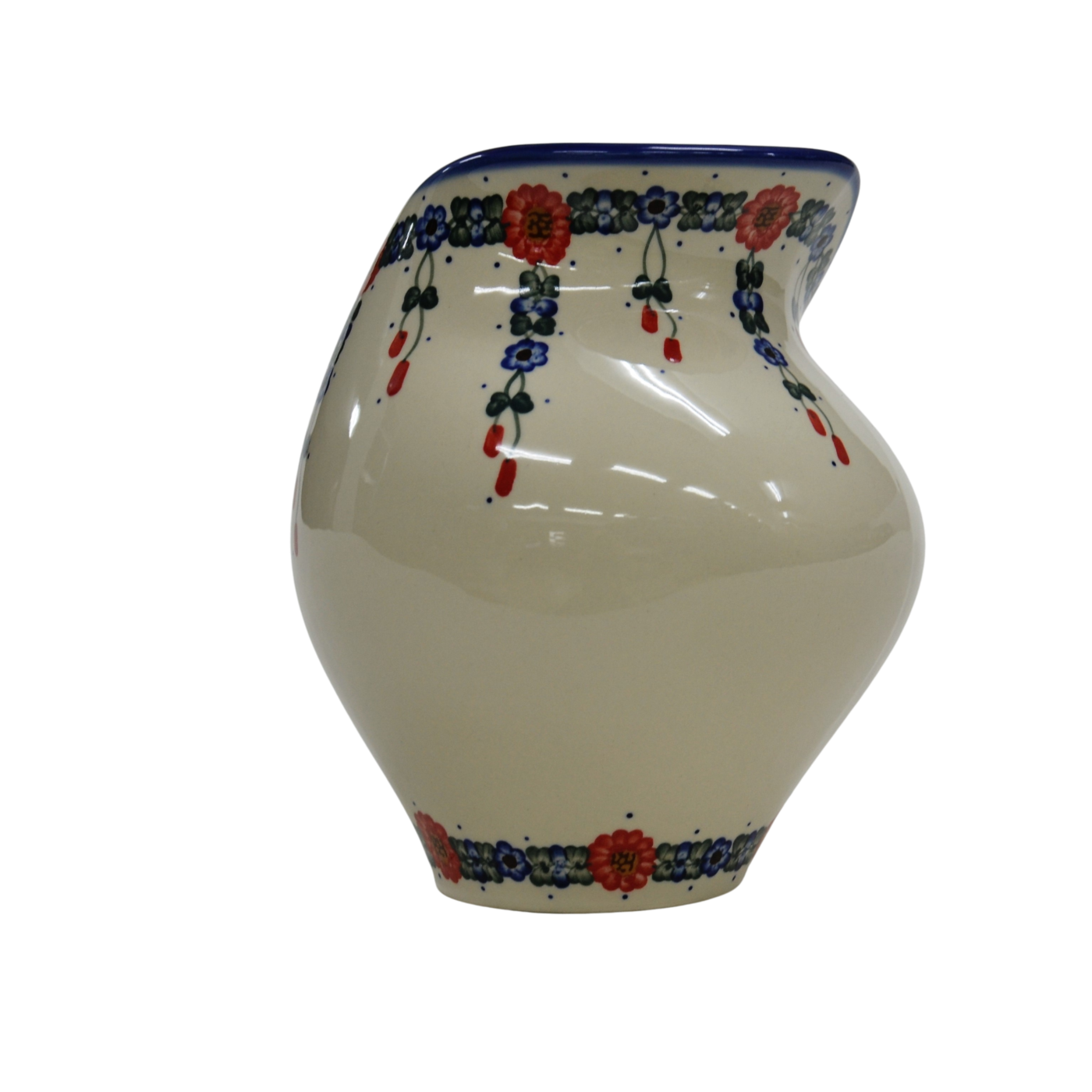 Wazon muszla, wyprodukowany w rodzinnej, bolesławieckiej manufakturze ceramiki użytkowej i dekoracyjnej. Ręcznie dekorowany w motywy kwiatowe oraz w tradycyjne stempelkowe, podszkliwne dekoracje. Kształt wazonu wykonany w stylu nowoczesnym w formie dużej muszli morskiej. Stylowy wazon o kształcie muszli morskiej.