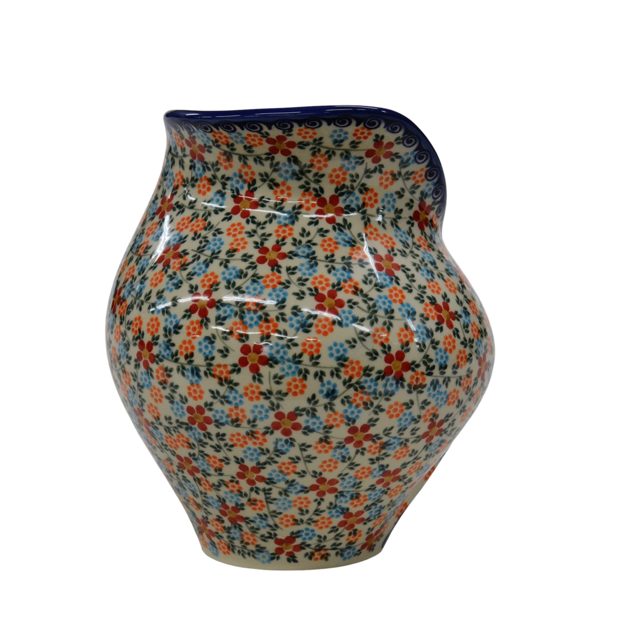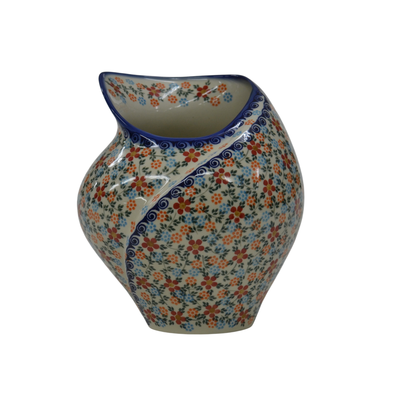 Wazon muszla, wyprodukowany w rodzinnej, bolesławieckiej manufakturze ceramiki użytkowej i dekoracyjnej. Ręcznie dekorowany w motywy kwiatowe oraz w tradycyjne stempelkowe, podszkliwne dekoracje. Kształt wazonu wykonany w stylu nowoczesnym w formie dużej muszli morskiej. Stylowy wazon o kształcie muszli morskiej.