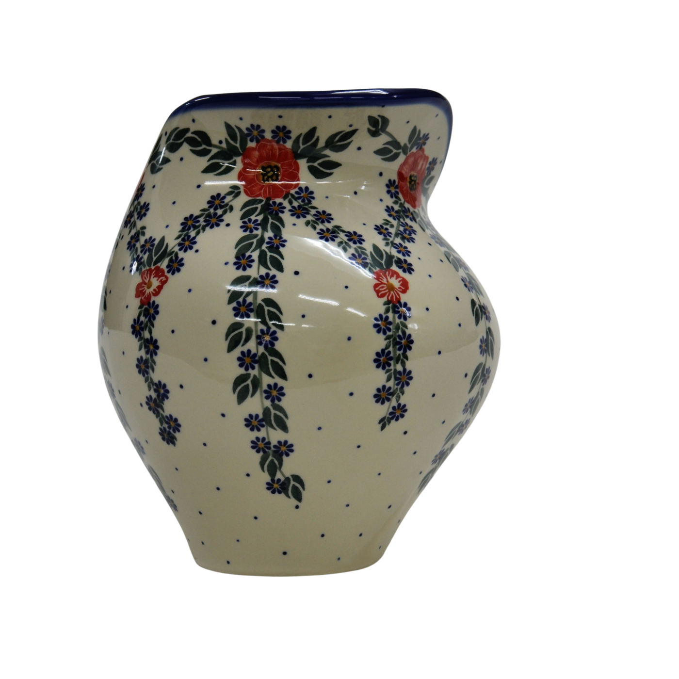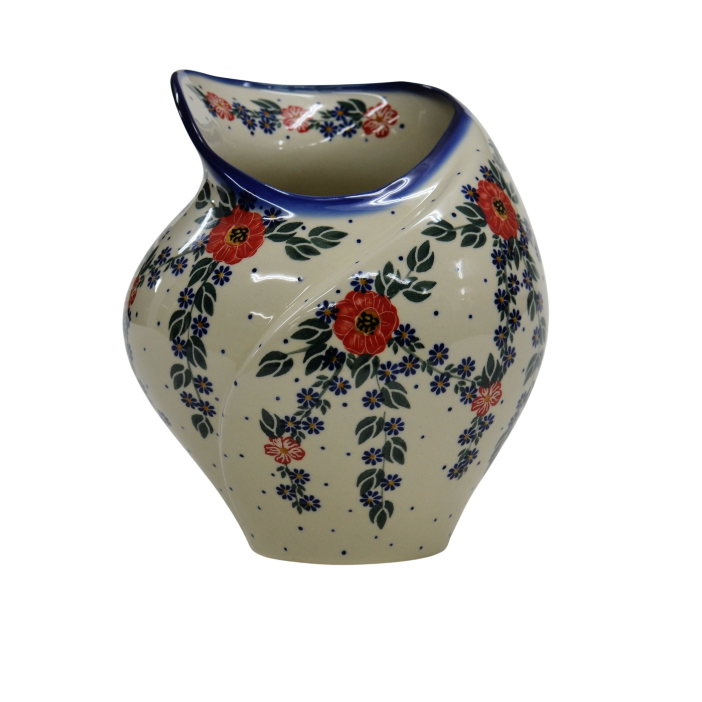 Wazon muszla, wyprodukowany w rodzinnej, bolesławieckiej manufakturze ceramiki użytkowej i dekoracyjnej. Ręcznie dekorowany w motywy kwiatowe oraz w tradycyjne stempelkowe, podszkliwne dekoracje. Kształt wazonu wykonany w stylu nowoczesnym w formie dużej muszli morskiej. Stylowy wazon o kształcie muszli morskiej.