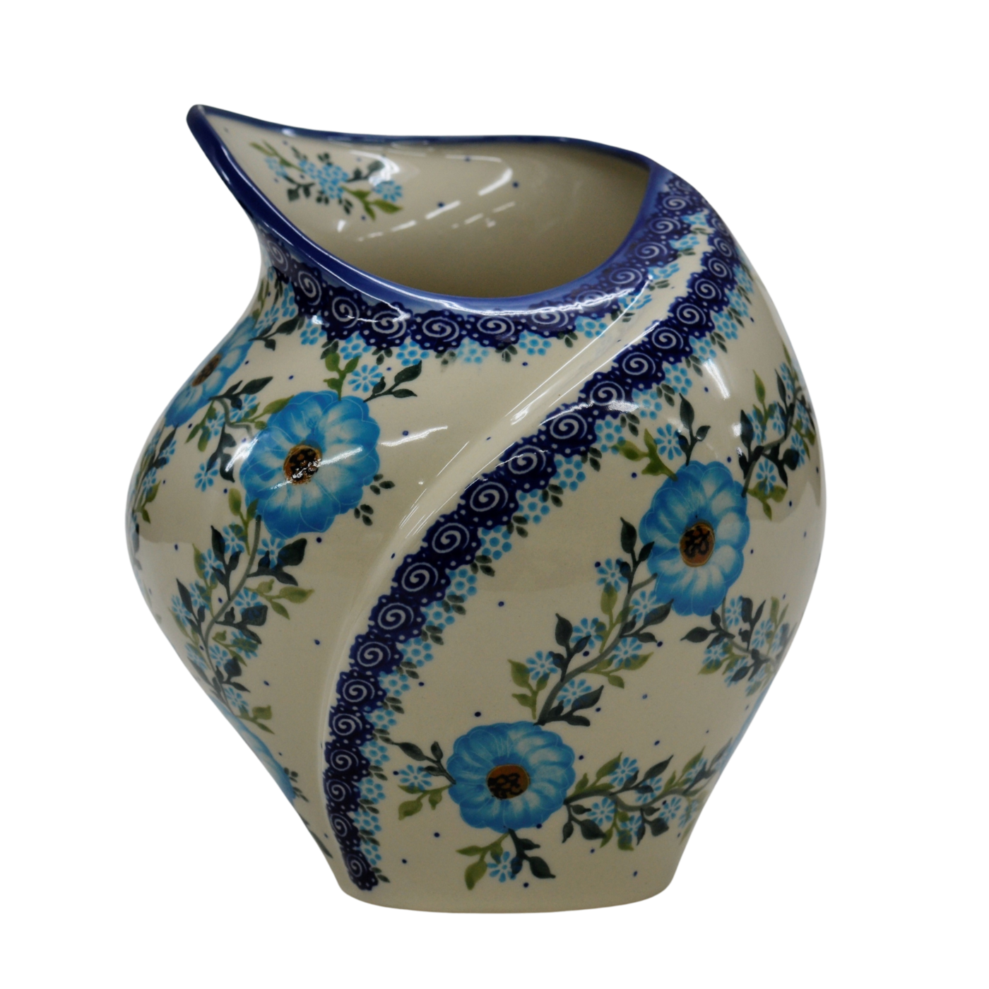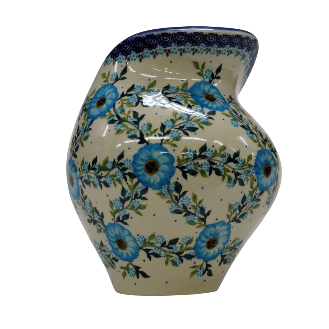 Wazon muszla, wyprodukowany w rodzinnej, bolesławieckiej manufakturze ceramiki użytkowej i dekoracyjnej. Ręcznie dekorowany w motywy kwiatowe oraz w tradycyjne stempelkowe, podszkliwne dekoracje. Kształt wazonu wykonany w stylu nowoczesnym w formie dużej muszli morskiej. Stylowy wazon o kształcie muszli morskiej.