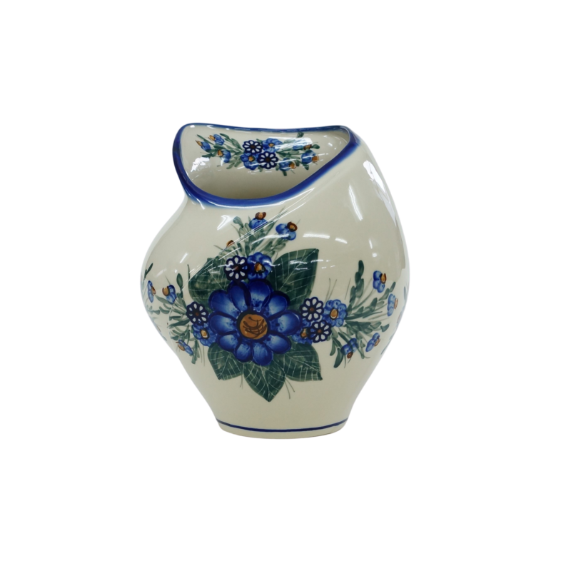 Wazon muszla, wyprodukowany w rodzinnej, bolesławieckiej manufakturze ceramiki użytkowej i dekoracyjnej. Ręcznie dekorowany w motywy kwiatowe oraz w tradycyjne stempelkowe, podszkliwne dekoracje. Kształt wazonu wykonany w stylu nowoczesnym w formie dużej muszli morskiej. Stylowy wazon o kształcie muszli morskiej.