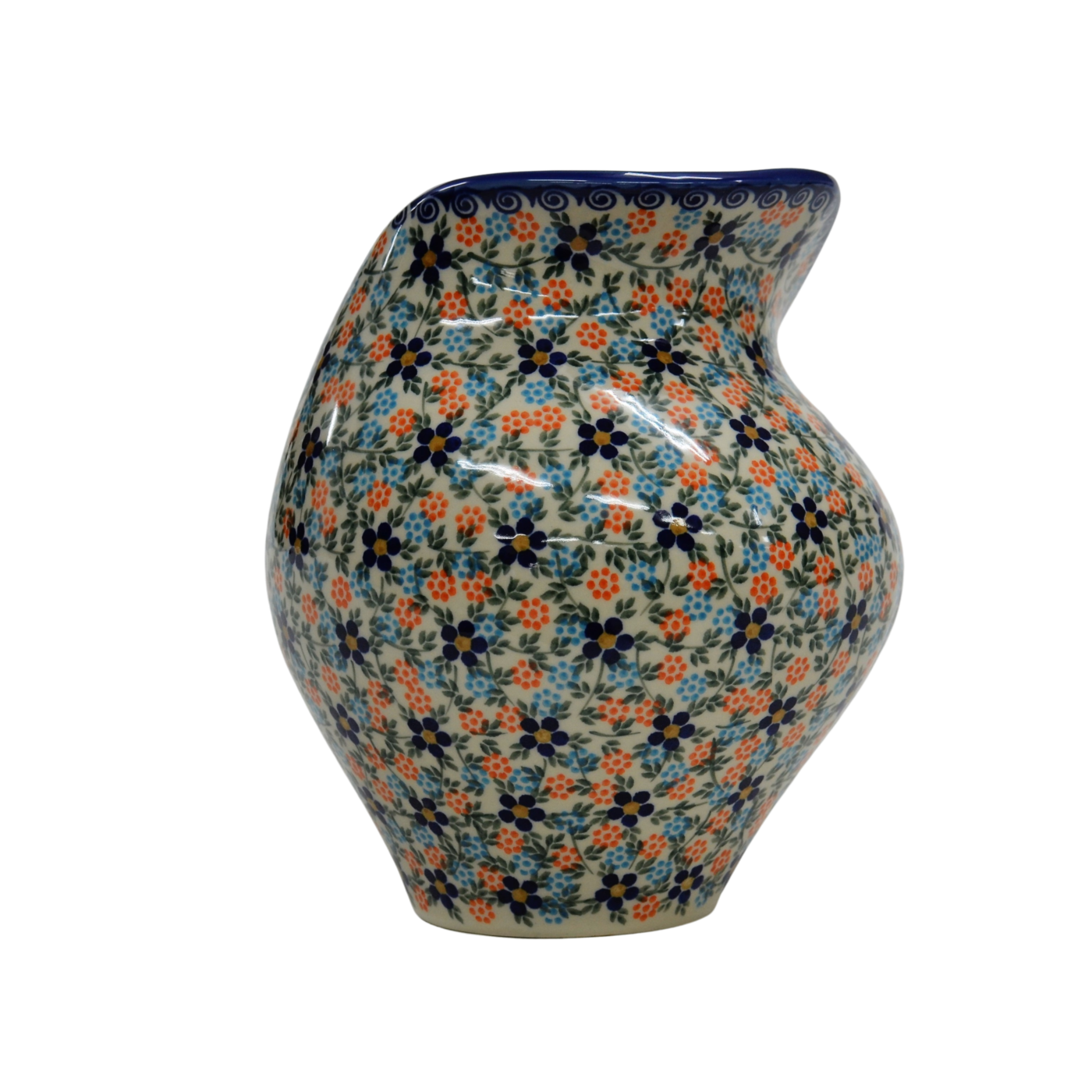 Wazon muszla, wyprodukowany w rodzinnej, bolesławieckiej manufakturze ceramiki użytkowej i dekoracyjnej. Ręcznie dekorowany w motywy kwiatowe oraz w tradycyjne stempelkowe, podszkliwne dekoracje. Kształt wazonu wykonany w stylu nowoczesnym w formie dużej muszli morskiej. Stylowy wazon o kształcie muszli morskiej.