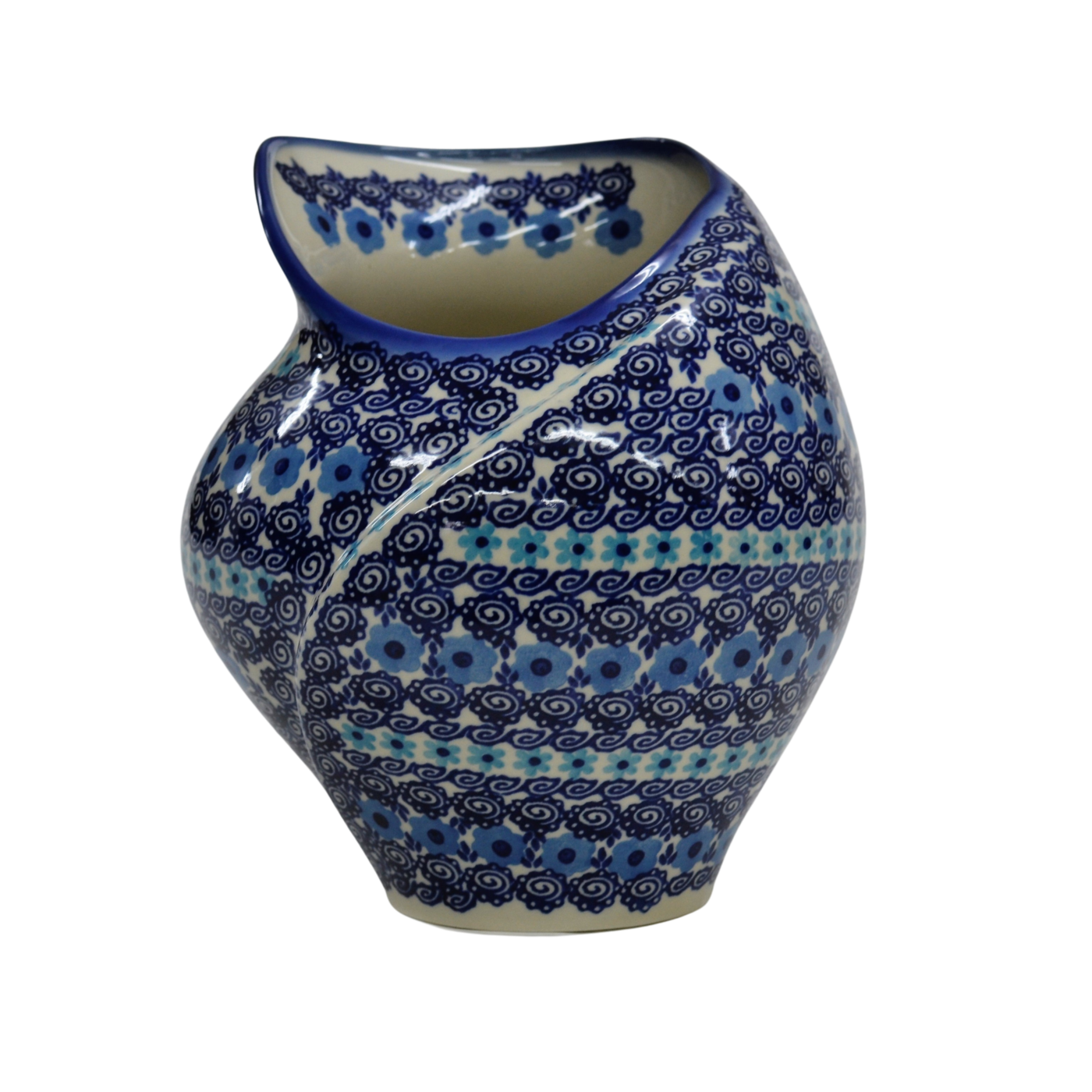 Stylowy wazon szkliwiony na zewnątrz i wewnątrz.