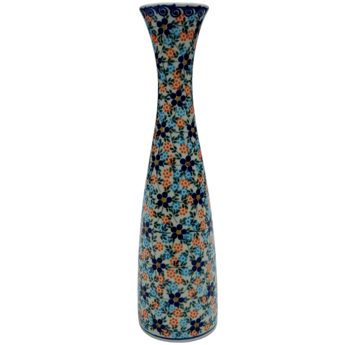 Oryginalny produkt ceramiki bolesławieckiej z zakładu ceramicznego, ANDY CERAMIKA, z Bolesławca. Wazon smukły II (duży) ręcznie malowany w tradycyjne dekoracje stempelkowe oraz motywy kwiatowe. Kształt wazonu, wykrojony w nowoczesnym stylu, smukły i wysoki, umożliwia przechowywanie wysokich kwiatów.
