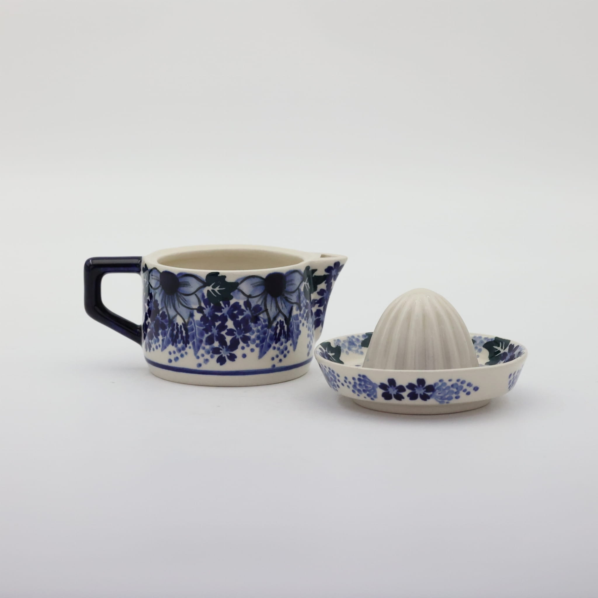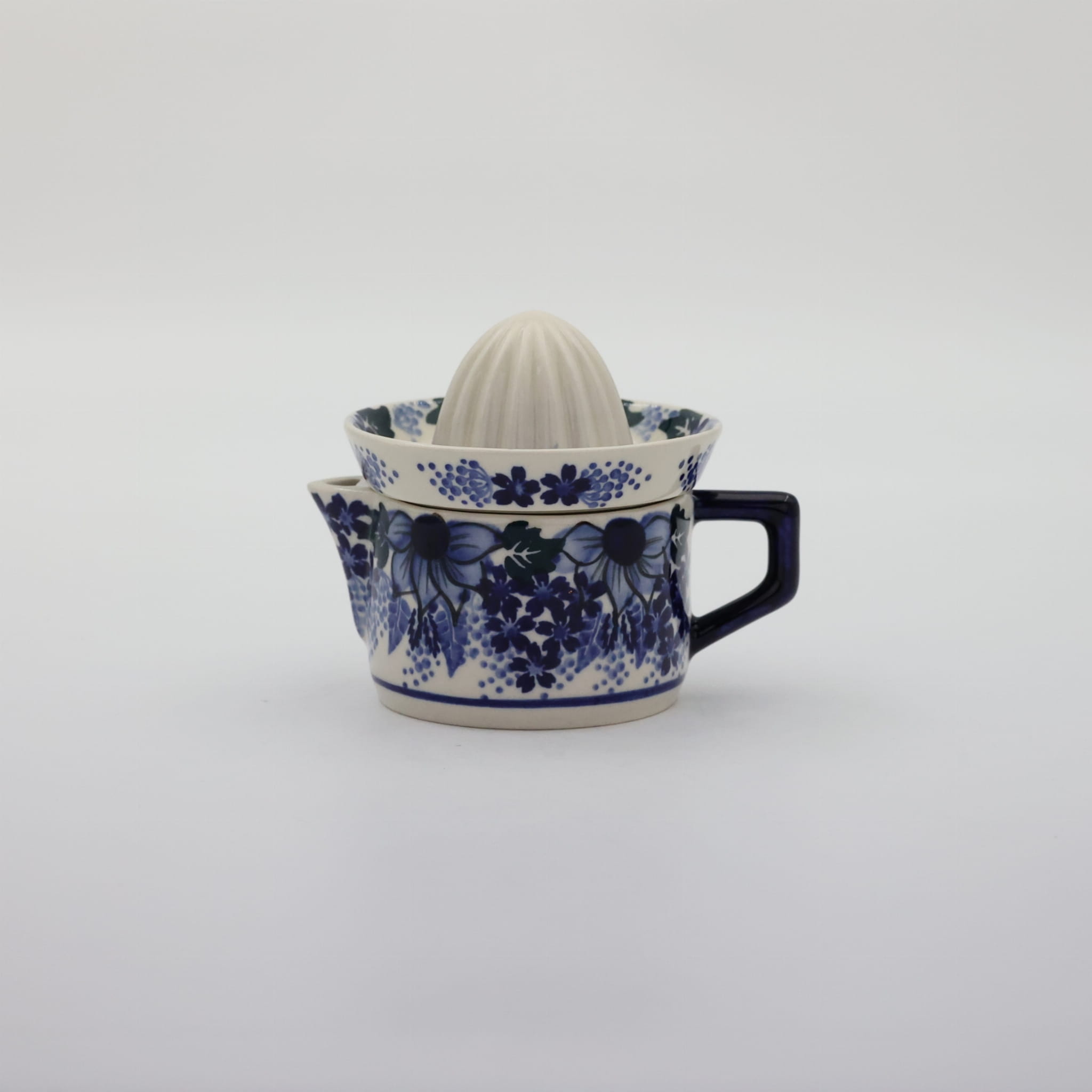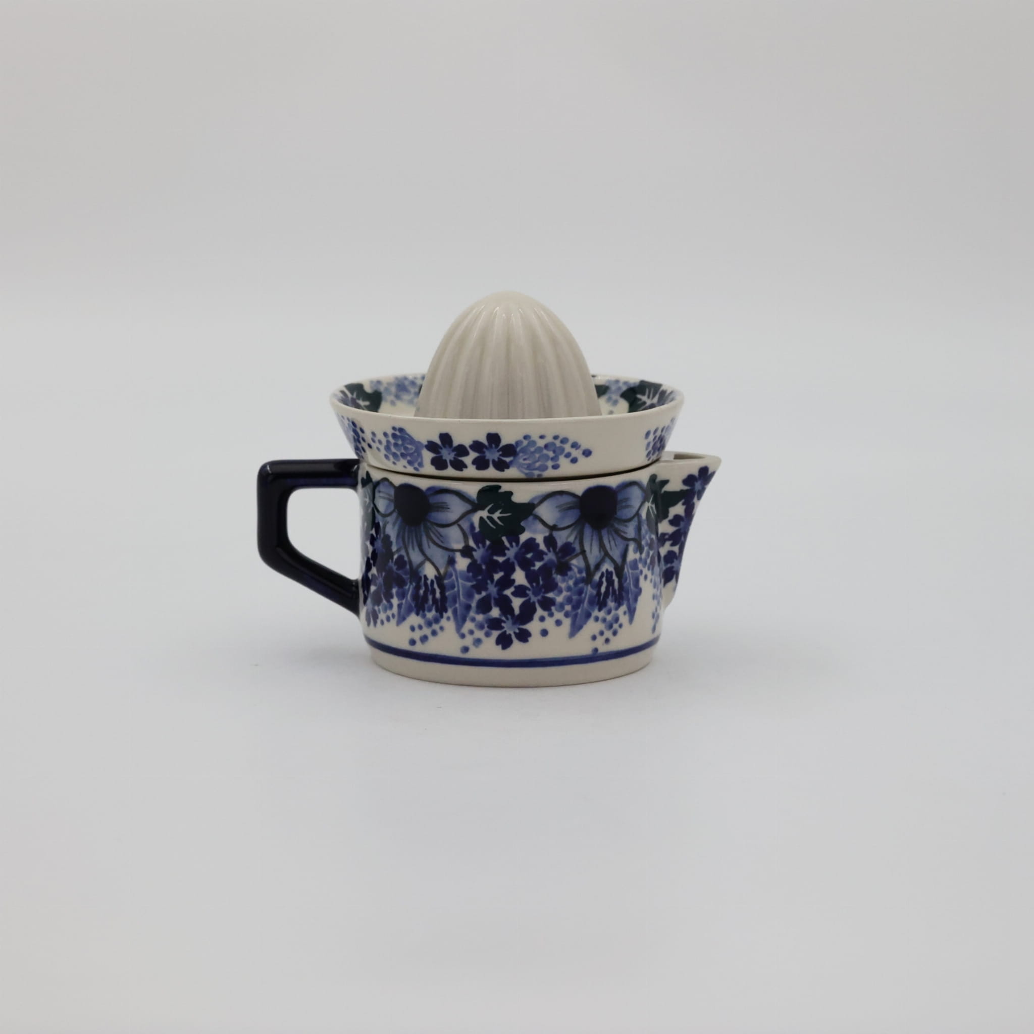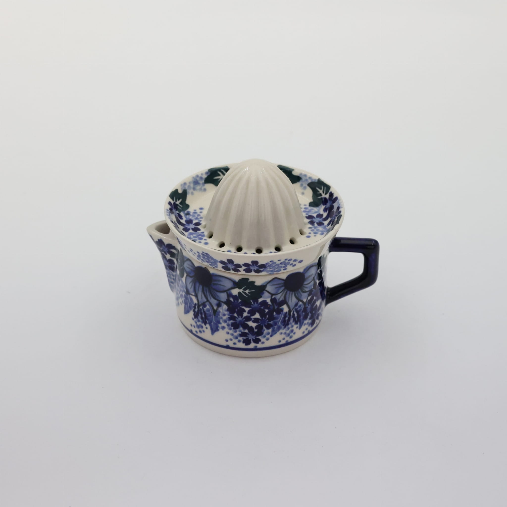 Wyciskarka malowana w tradycyjne wzory ceramiki bolesławieckiej i dekoracje kwiatowe, unikatowe znajduje wysokie zainteresowanie w gospodarstwach domowych, jest idealnym uzupełnieniem serwisu kawowego.