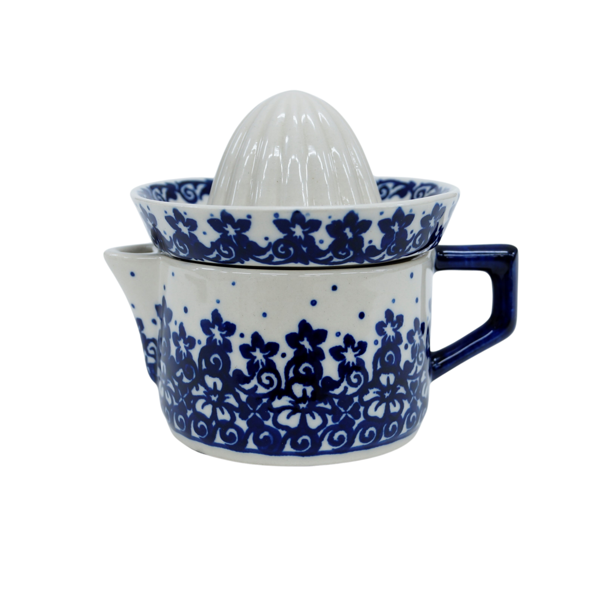 Wyciskarka malowana w tradycyjne wzory ceramiki bolesławieckiej i dekoracje kwiatowe, unikatowe znajduje wysokie zainteresowanie w gospodarstwach domowych, jest idealnym uzupełnieniem serwisu kawowego.