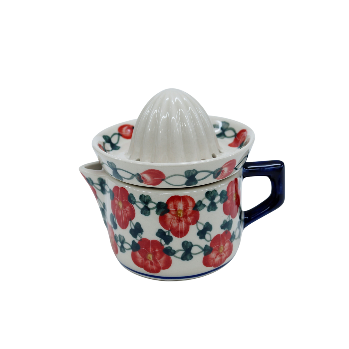 Wyciskarka malowana w tradycyjne wzory ceramiki bolesławieckiej i dekoracje kwiatowe, unikatowe znajduje wysokie zainteresowanie w gospodarstwach domowych, jest idealnym uzupełnieniem serwisu kawowego.