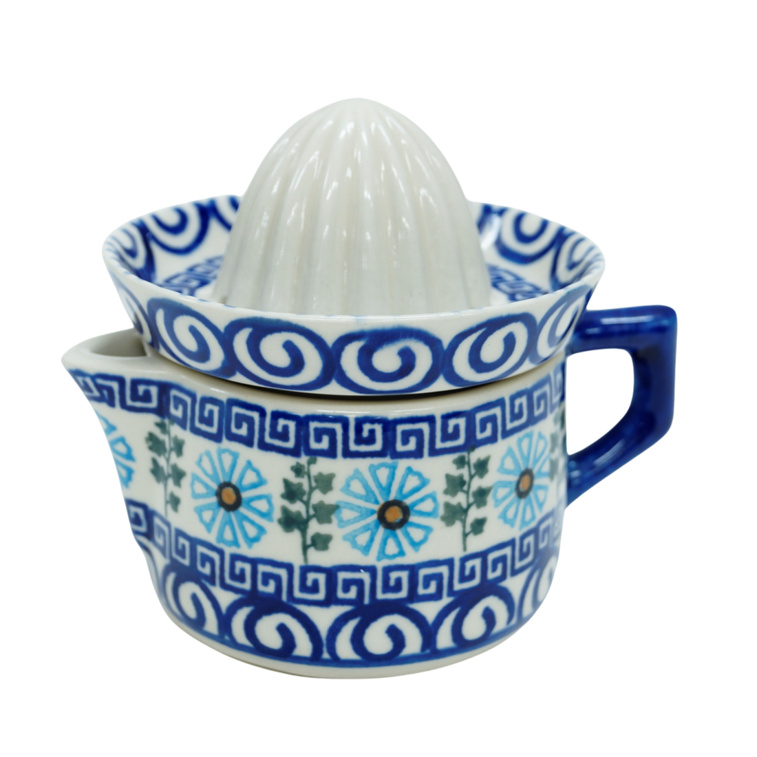 Wyciskarka malowana w tradycyjne wzory ceramiki bolesławieckiej i dekoracje kwiatowe, unikatowe znajduje wysokie zainteresowanie w gospodarstwach domowych, jest idealnym uzupełnieniem serwisu kawowego.