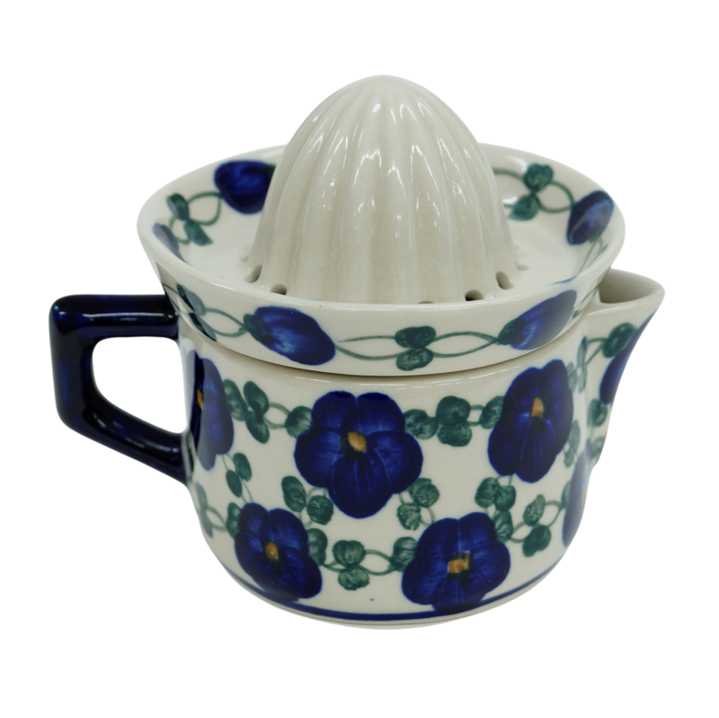 Wyciskarka malowana w tradycyjne wzory ceramiki bolesławieckiej i dekoracje kwiatowe, unikatowe znajduje wysokie zainteresowanie w gospodarstwach domowych, jest idealnym uzupełnieniem serwisu kawowego.
