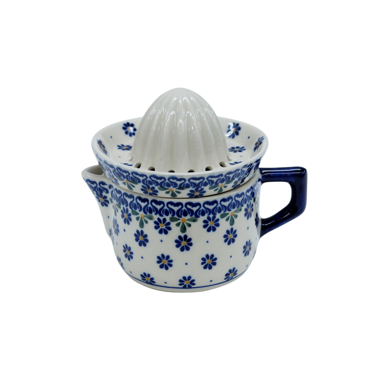 Wyciskarka malowana w tradycyjne wzory ceramiki bolesławieckiej i dekoracje kwiatowe, unikatowe znajduje wysokie zainteresowanie w gospodarstwach domowych, jest idealnym uzupełnieniem serwisu kawowego.