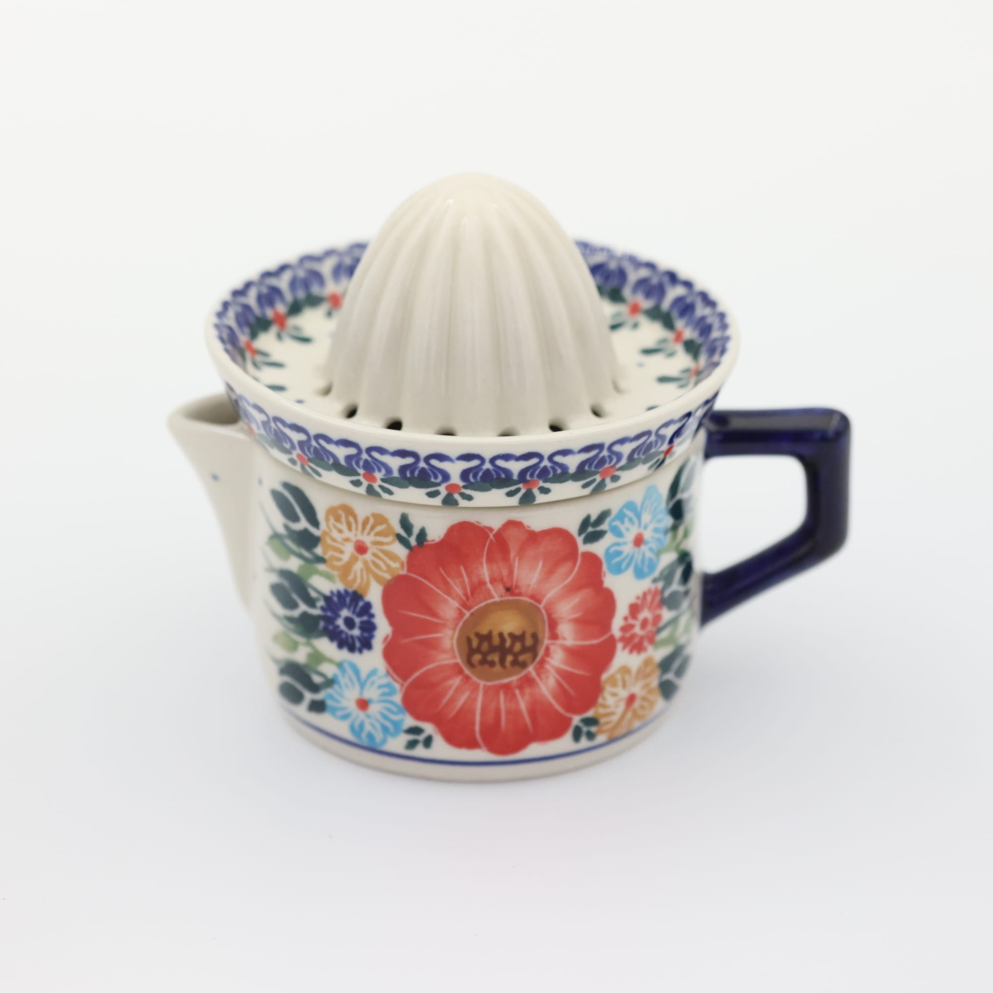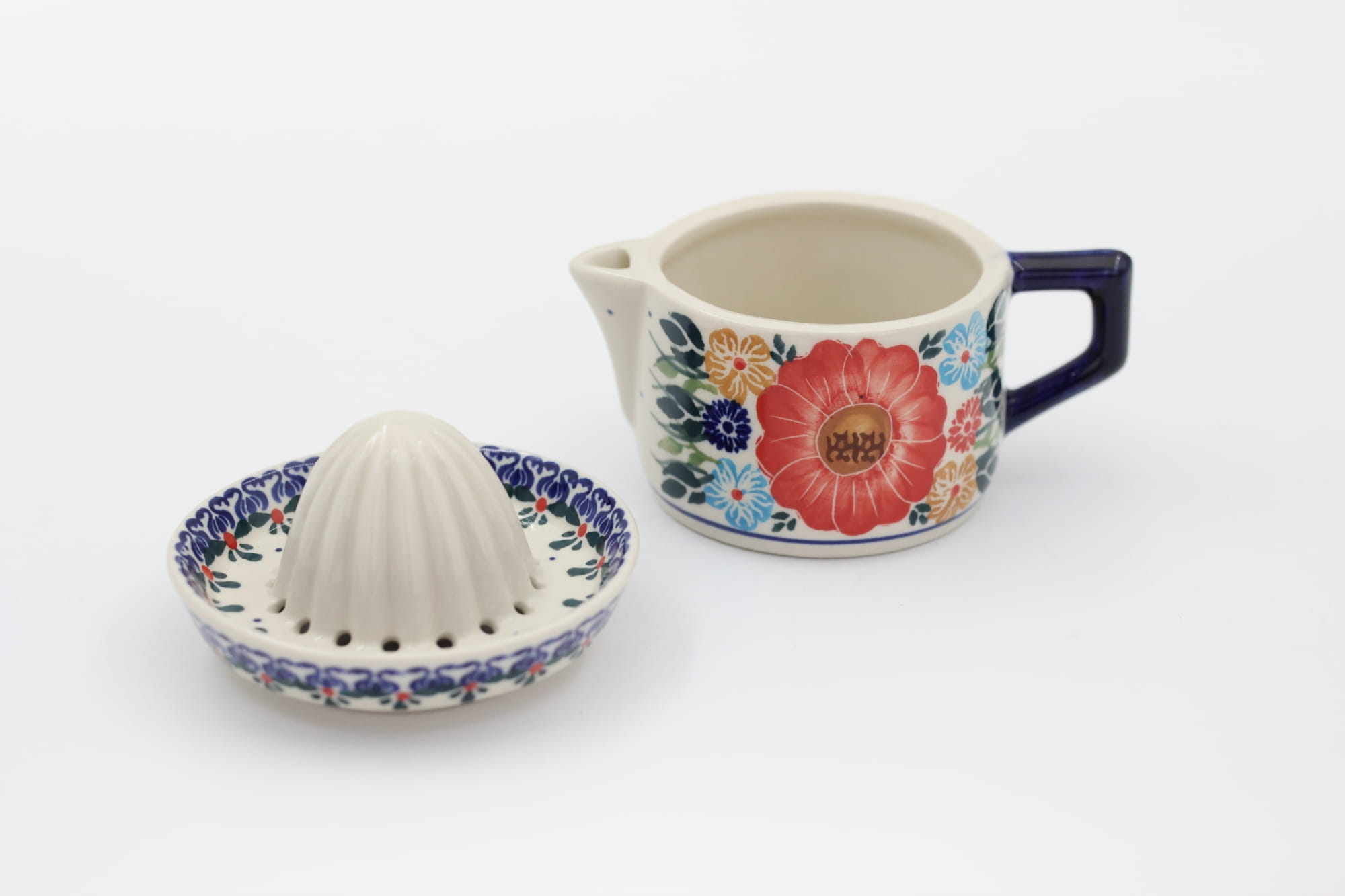 Wyciskarka malowana w tradycyjne wzory ceramiki bolesławieckiej i dekoracje kwiatowe, unikatowe znajduje wysokie zainteresowanie w gospodarstwach domowych, jest idealnym uzupełnieniem serwisu kawowego.