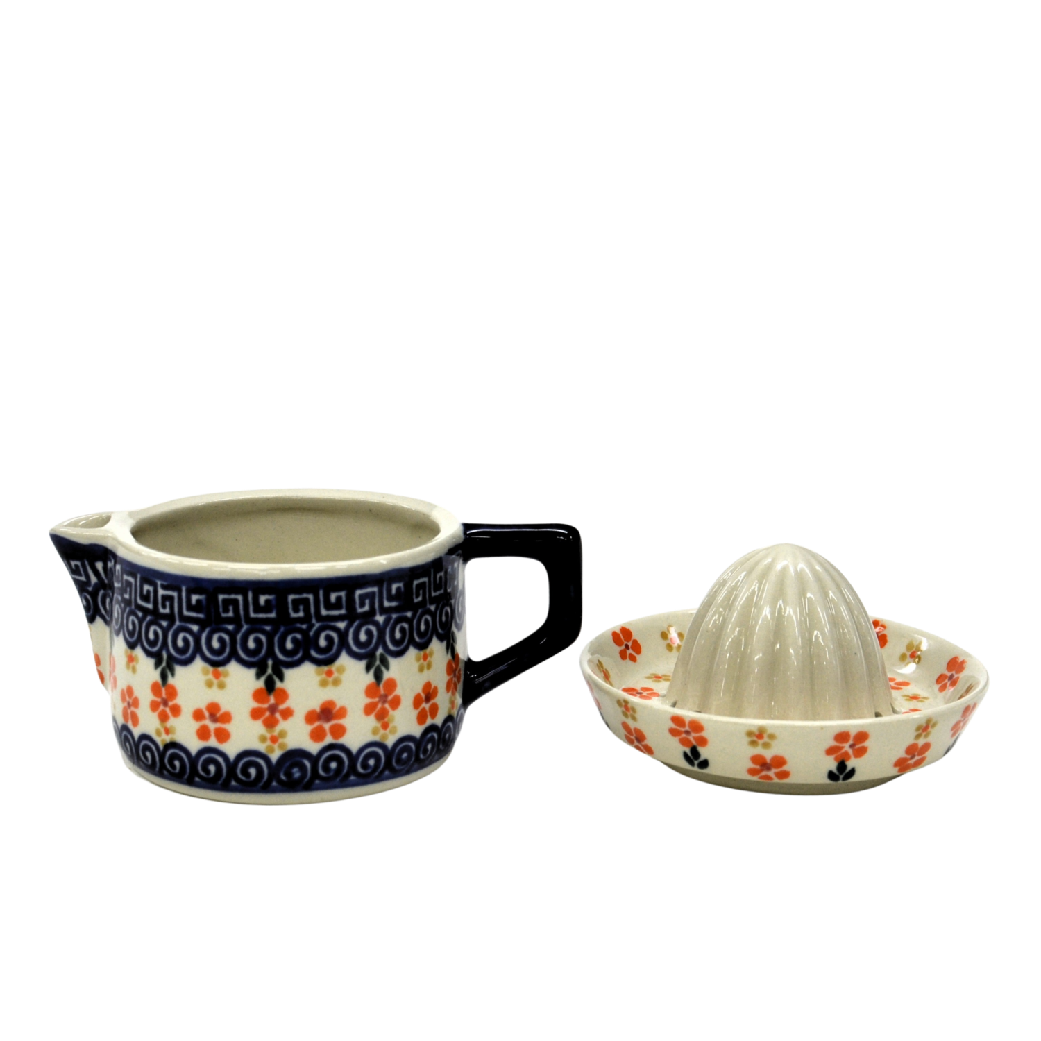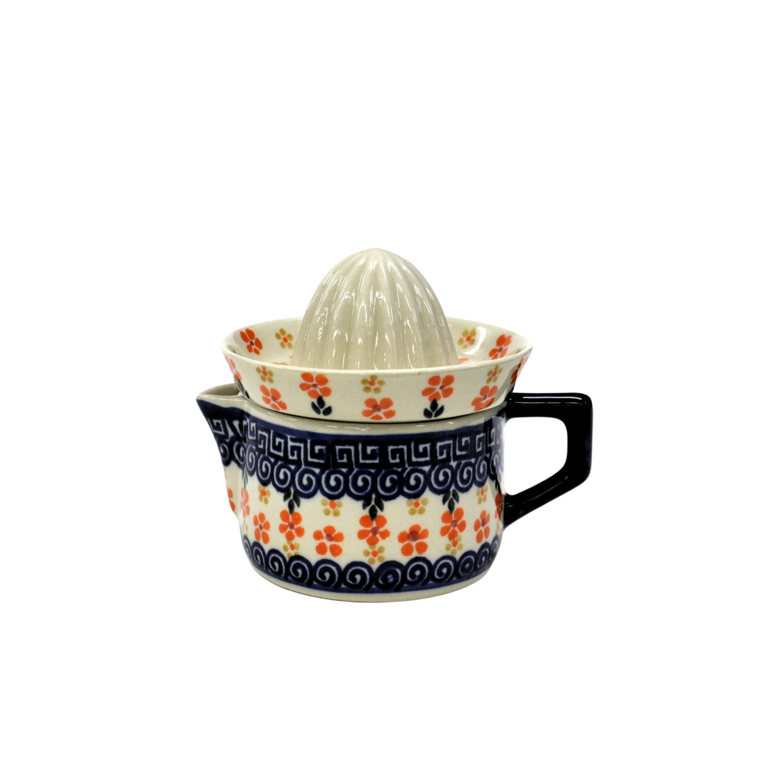 Wyciskarka malowana w tradycyjne wzory ceramiki bolesławieckiej i dekoracje kwiatowe, unikatowe znajduje wysokie zainteresowanie w gospodarstwach domowych, jest idealnym uzupełnieniem serwisu kawowego.