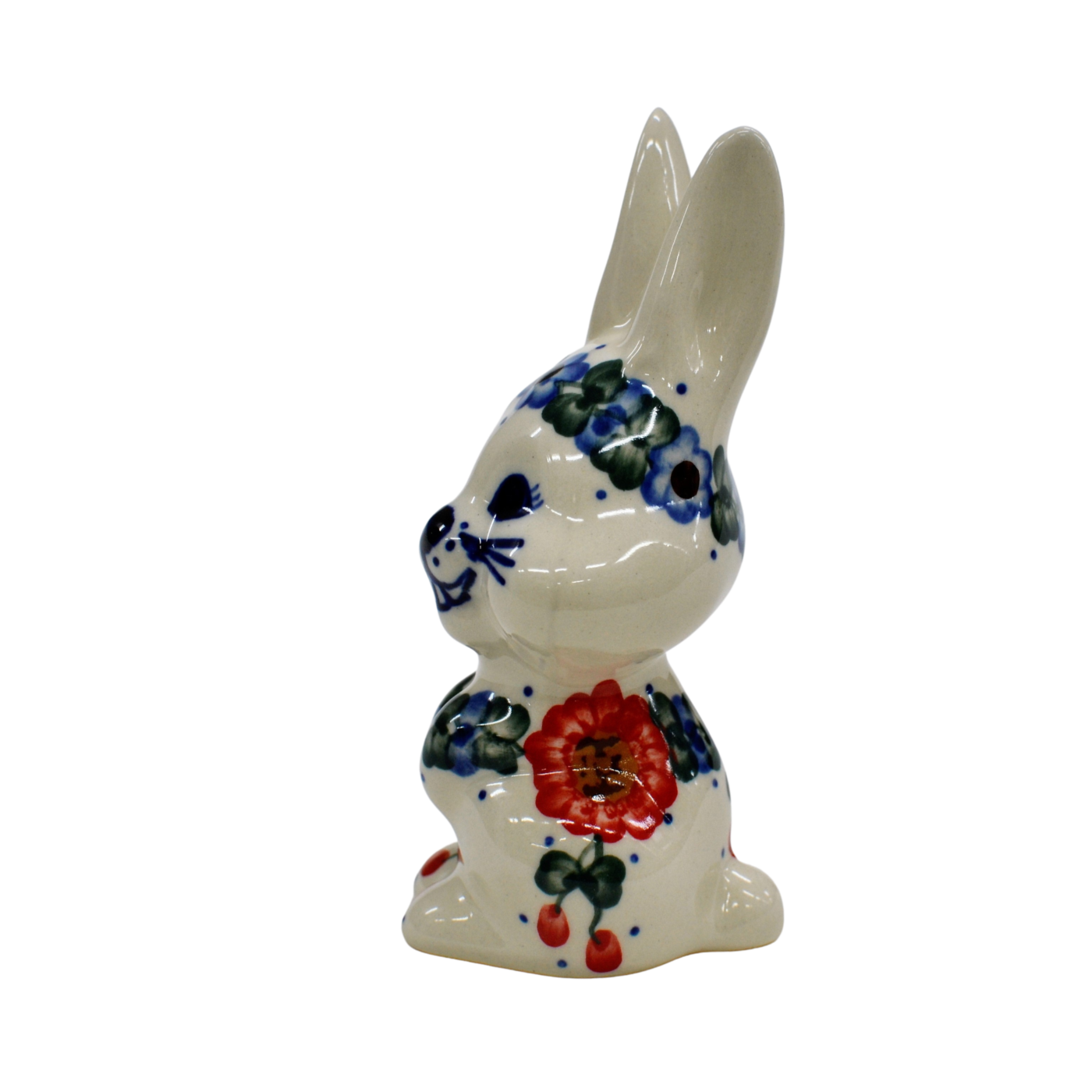 Wspaniały pomysł na wielkanocne i wiosenne ozdoby domu i mieszkania. Królik ceramiczny, ręcznie malowany w oryginalne wzory ceramiki bolesławieckiej.