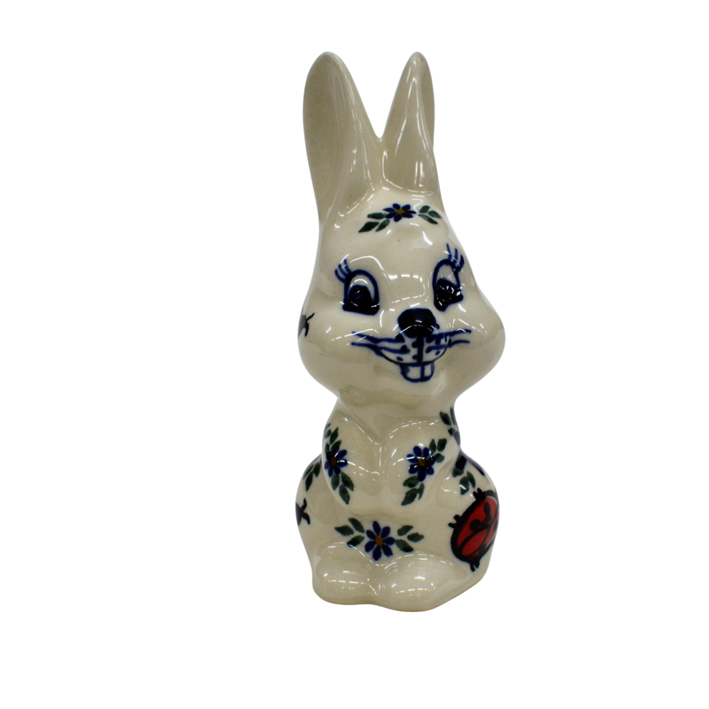 Wspaniały pomysł na wielkanocne i wiosenne ozdoby domu i mieszkania. Królik ceramiczny, ręcznie malowany w oryginalne wzory ceramiki bolesławieckiej.