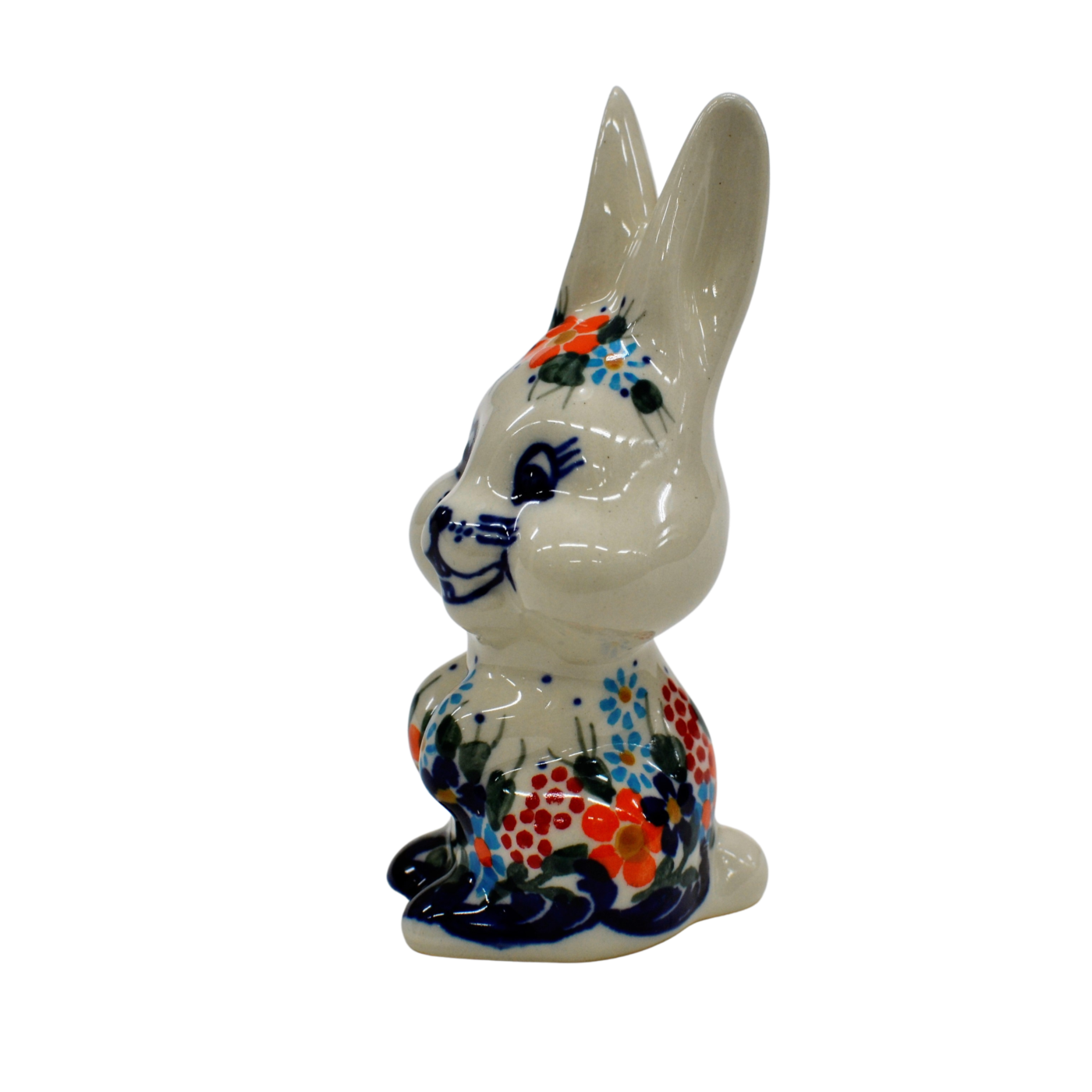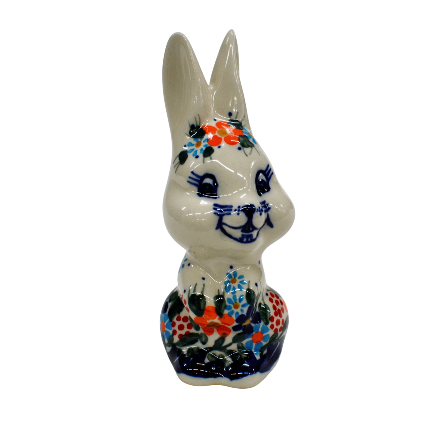 Wspaniały pomysł na wielkanocne i wiosenne ozdoby domu i mieszkania. Królik ceramiczny, ręcznie malowany w oryginalne wzory ceramiki bolesławieckiej.