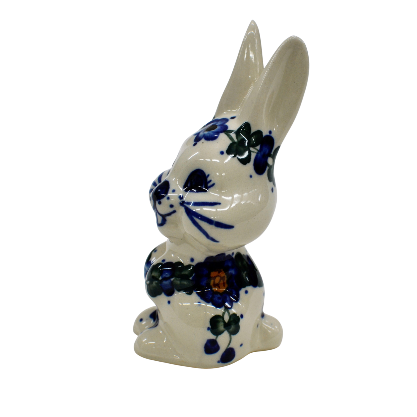 Wspaniały pomysł na wielkanocne i wiosenne ozdoby domu i mieszkania. Królik ceramiczny, ręcznie malowany w oryginalne wzory ceramiki bolesławieckiej.