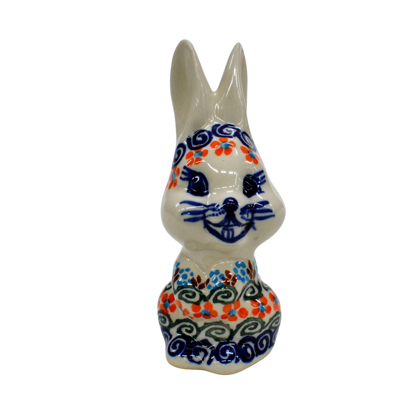 Wspaniały pomysł na wielkanocne i wiosenne ozdoby domu i mieszkania. Królik ceramiczny, ręcznie malowany w oryginalne wzory ceramiki bolesławieckiej.