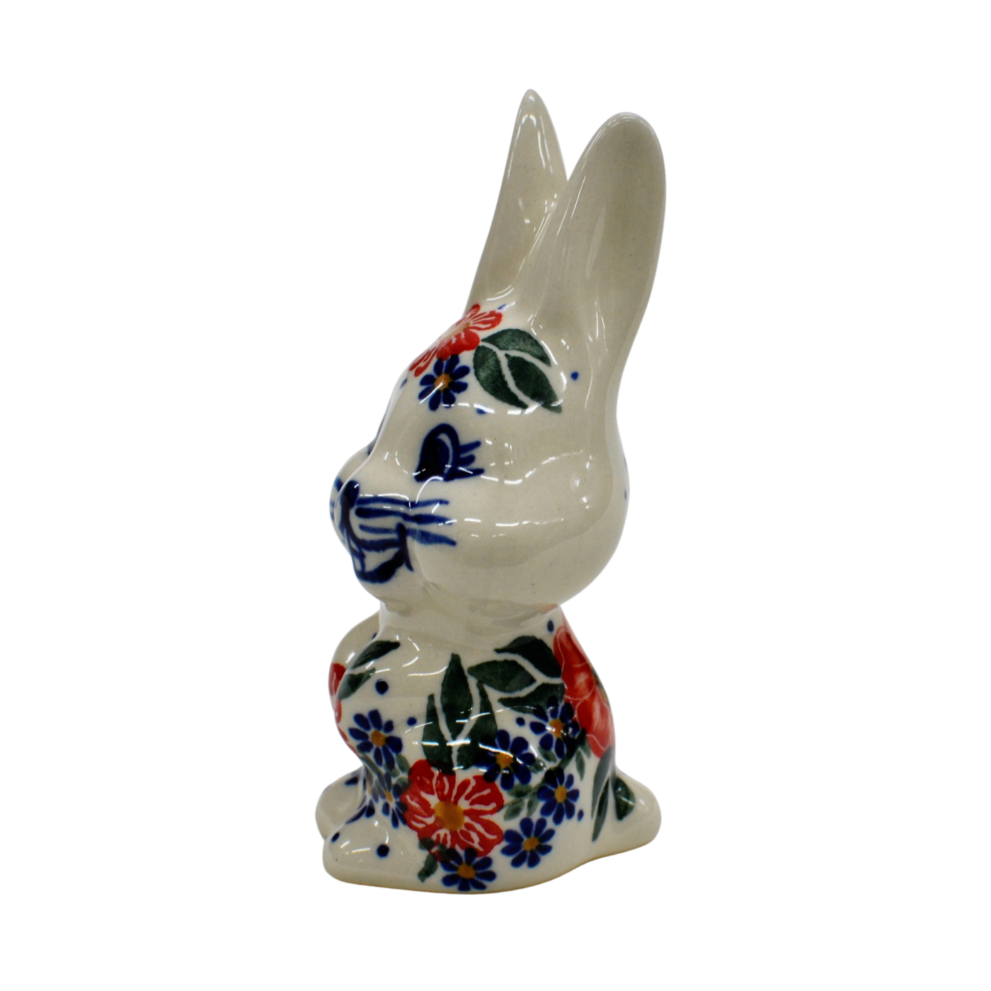 Wspaniały pomysł na wielkanocne i wiosenne ozdoby domu i mieszkania. Królik ceramiczny, ręcznie malowany w oryginalne wzory ceramiki bolesławieckiej.