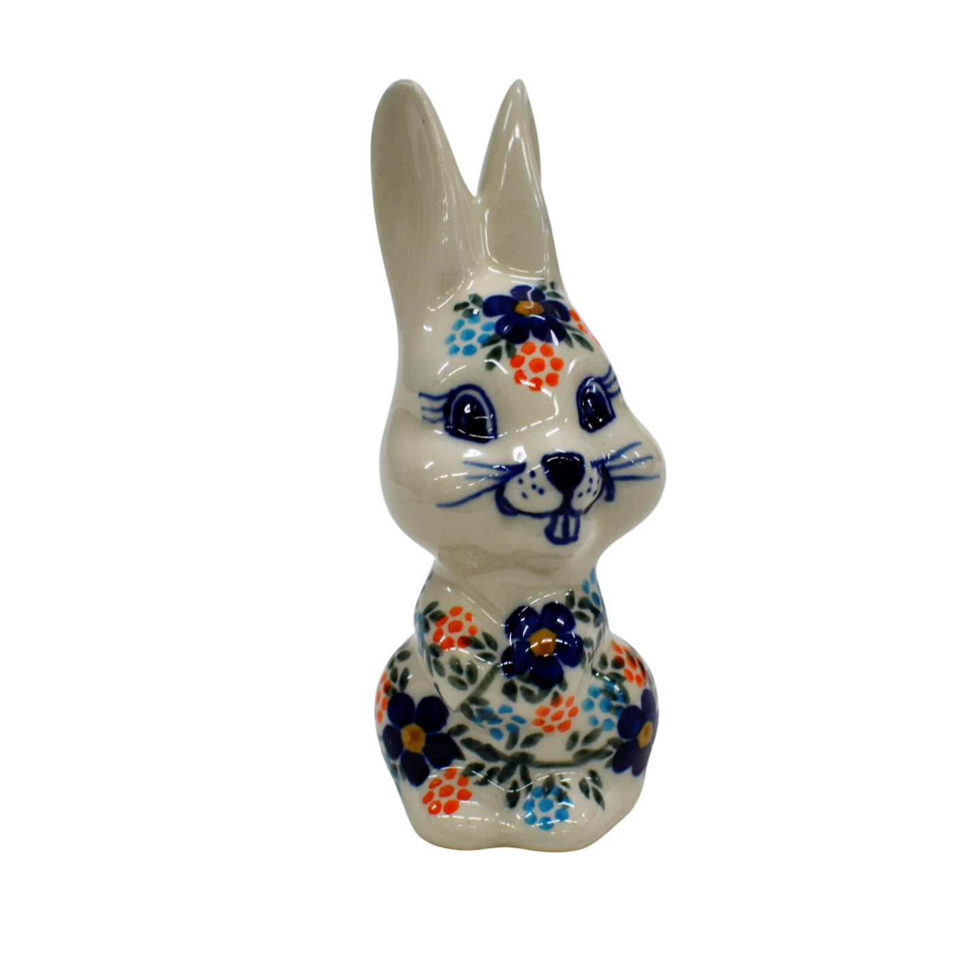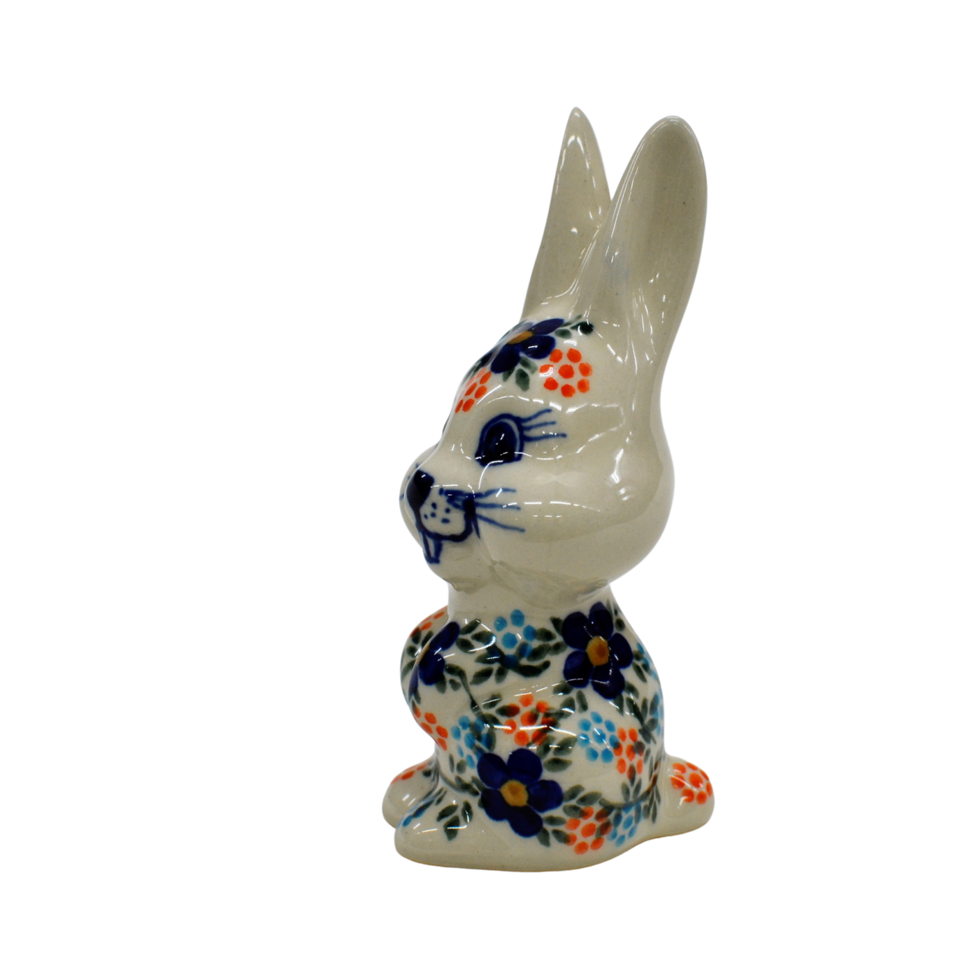 Wspaniały pomysł na wielkanocne i wiosenne ozdoby domu i mieszkania. Królik ceramiczny, ręcznie malowany w oryginalne wzory ceramiki bolesławieckiej.